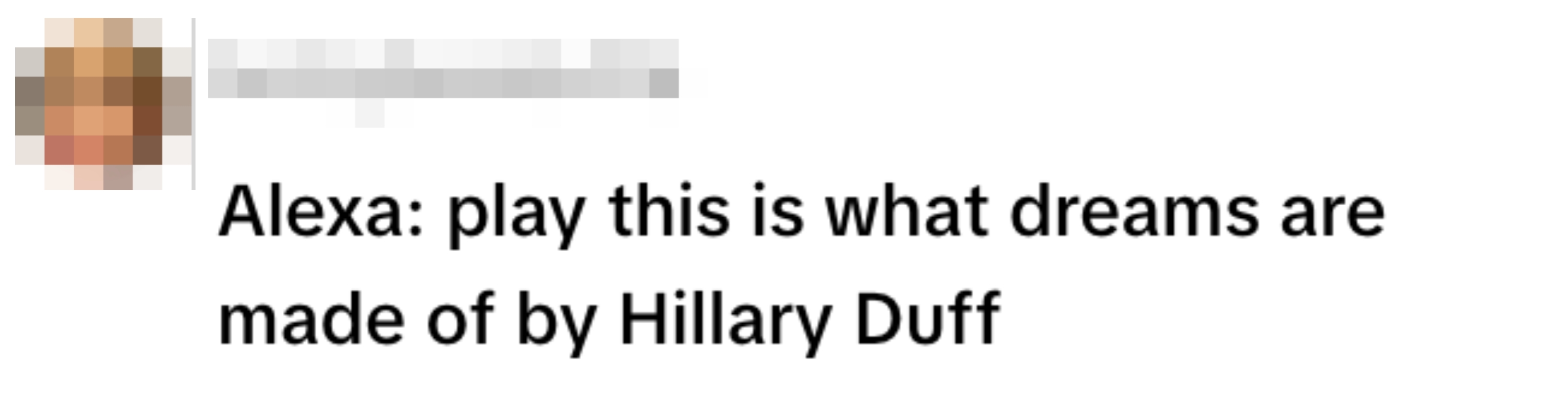 "Alexa: play this is what dreams are made of by Hillary Duff."