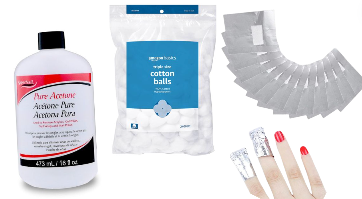 Get them from Amazon: the acetone for $9.49, a pack of cotton balls for $3.83, and 400 foil sheets for $14.99.