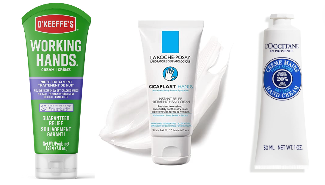 Get them from Amazon: the O'Keefe's hand cream for $17.99, the La Roche-Posay hand cream for $12.99, and the L’Occitane hand cream for $34.