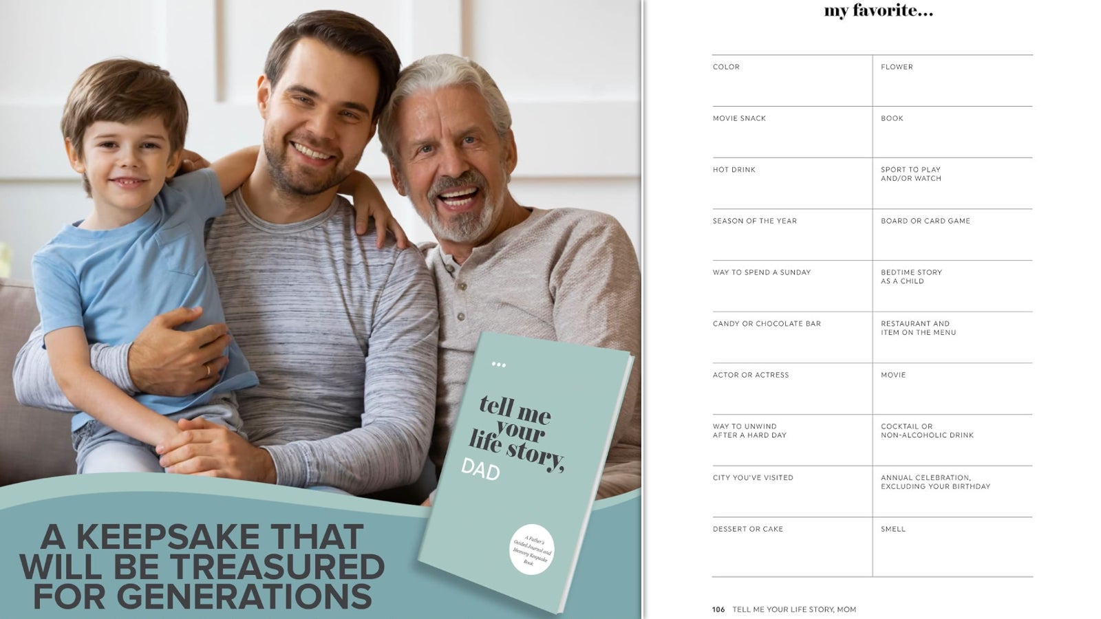 The brand also offers memory books designed for moms and dads; its Dad's Life Story version is a bestseller.