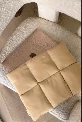 Promising review: "Going on a big trip soon and I bought this for travel. I am super obsessed with the quality and how light/soft it is. It's the perfect size for my laptop and acts as a cushion for other things in my backpack. It can be slightly tricky to open, I just slide one finger in and then expand my hand to open it but it has a magnetic-like closure. Love the color too, it's simple." —mandella cesena