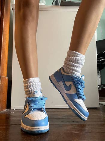 Promising review: "The second these are out of the laundry, they're on my feet. The slouchy look is so cute and paired with a white tennis shoe — it’s my favorite thing to wear on my feet. They’re so comfortable, very soft, and they don’t leave marks on your legs like most socks do from being too tight." —Elisa
