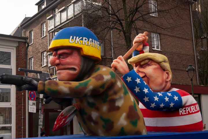 Donald Trump was once again the target of satirical mockery at the annual Rose Monday carnival parade in Düsseldorf, Germany. One effigy of the president, with “ICE” representing Immigration and Customs Enforcement written on his sleeve, depicted him punching Jesus Christ, with “Love & humanity” on his shirt, in the face: Another float showed Trump fighting with Russian President Vladimir Putin to devour Europe: Putin was also depicted knifing satire: An image of the late convicted sex offender Jeffrey Epstein, a onetime close associate of Trump, was turned into a vampire with messages on his wings reading “everyone protects the perpetrators” and “everyone ignores the victims.” See how Trump has been depicted on floats at the same carnival since 2016. By entering your email and clicking Sign Up, you're agreeing to let us send you customized marketing messages about us and our advertising partners. You are also agreeing to our Terms of Service and Privacy Policy.