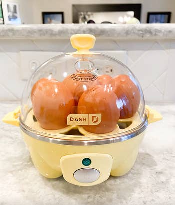 BuzzFeed Shopping writer Emma Lord says, "I've owned one of these babies and have faithfully used it every week for upward of two years, and especially love it while working from home — it simplifies breakfast because I know no matter what assortment of groceries I'm working with, there are precooked eggs to add some protein to it. (I like mine medium-boiled. 🍳) If my dinner is boring or seems like it needs a little extra oomph to it, I'll throw in an egg from this too. Some reviews note that the alarm on it is a little loud, but the new models have significantly decreased the volume and sing a little song instead!"