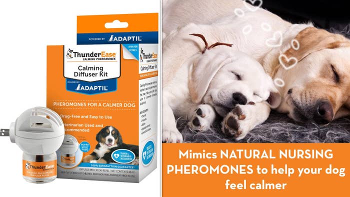 We hope you love our recommendations! While every product is independently chosen by our editors, BuzzFeed and our publishing partners may collect a share of sales or other compensation from the links on this page. You can read more about how our affiliate partnerships work in our Editorial Standards & Ethics Guide. From pheromone diffusers to noise buffers, these items can help ease your pet's anguish. These are symptoms of pet separation anxiety, according to Dr. Vanessa Spano, a veterinarian and veterinary behaviorist at New York City’s Schwarzman Animal Medical Center, and it can take different forms. As pet parents, we hate seeing our pets in emotional pain — especially since we know that we aren’t leaving forever and will always return home to them. So what can we do to ease our sweet ones’ anguish? Seeking out a nearby veterinary behaviorist, as well as a trainer who only uses positive reinforcement, is a great start, according to Spano. You should also ensure that your pet has ready access to meals, treats, water, comfy bedding (like this soft donut bed) and a potty area (which may include a pee pad for dogs) whenever you’re gone. In addition, Spano stressed that your pet should not be confined in a crate during your absence. Crucially, “the single most important point that pet parents must understand about separation anxiety is that it is not at all helpful or ethical to use ‘crying it out’ as a treatment plan,” emphasized Spano, adding that “many pets with separation anxiety are truly anxious for hours” while a pet parent is away. Read on for more information from Spano, plus some tools she recommends using with the approval of your veterinarian, in addition to potential supportive medication and positive-reinforcement training. The experts consulted for this story do not necessarily endorse the products ahead unless otherwise noted. "The definition of separation anxiety implies that the pet parent is not present, which can make it very difficult for the pet parent to observe clinical signs in the moment," explained Spano. "One way around this is by installing a home camera system that you can also download and view on your phone through an app, such as Wyze," she added. "You can see what your pet is doing when you are not with them. If your pet is with a sitter, you can also ask for the sitter's observations." This motion-tracking Wyze camera can rotate 360 degrees so you can see all of your pet's environment. The device also has color night vision and is compatible with Alexa and Google Assistant. You can grab it in white or black. Adaptil is a species-specific pheromone analog designed to help calm anxious dogs and was previously recommended to us by a veterinarian. The tool is designed to help ease stress barking, separation anxiety and fear of fireworks. Plug the Adaptil diffuser into an outlet in your home for it to begin working. (Make sure its vents are facing upward.) Your dog should experience its soothing effects, but the product is designed not to impact other pets or humans. This Adaptil starter kit includes the plug-in diffuser and a 30-day supply of the pheromone analog. Get it from Amazon for $24.99 (also available in 60 and 90-day supplies). Similarly, this Feliway pheromone diffuser is designed to ease stress in cats without affecting other household pets or people. By plugging the device into an open outlet, with vents facing upward, it will continuously release a pheromone analog and help create a comforting environment for your kitty. This starter set comes with a diffuser and a 30-day vial. "It is not uncommon for noise sensitivity to be a comorbidity in patients with separation anxiety, so I often recommend for my clients to utilize noise buffers, such as a white noise machine, a calming playlist on YouTube ... or insulating foam around door/window frames, especially in noisy apartment buildings," noted Spano, recommending Through a Dog’s Ear on YouTube. Based on her recommendation, we selected this compact Homedics white noise machine, which is exceptionally popular on Amazon with over 57,000 ratings. The device, called a miracle worker by one reviewer, offers six nature-inspired sounds. Reviewers rave about its affordability and how it helps their pets relax when they're home alone. Get it from Amazon for $18.99+ (available in two colors). “If you would like to consider a calming supplement, speak with your veterinarian first to ensure it is safe for your pet’s unique health picture,” emphasized Spano. “Reputable supplements which have demonstrated efficacy in reducing signs of separation anxiety include L-theanine (or green tea extract), which is found in the products Anxitane and Solliquin." The supplement is available in a version for small dogs and cats and in a style for large dogs. Each kind includes 30 tablets. Get them from Amazon: the small dog/cat version for $25 and the large dog version for $39.99. Another supplement that includes anxiety-relieving L-theanine is Solliquin. Again, be sure that your veterinarian is OK with you giving the product to your pet. According to Pennsylvania's Patton Veterinary Hospital, the L-theanine in Solliquin "stimulates alpha brain waves," which causes "a state of deep relaxation." The calming supplement is available in two versions, each with 30 chews: one for cats and dogs weighing up to 30 pounds, and one for dogs weighing 31 pounds or more. Based on Spano's advice to use insulating foam for dampening noise in loud areas, we chose this popular option from the brand Frost King. Available in various sizes and packs, Frost King's adhesive rubber foam is praised by reviewers for its affordability and effectiveness in blocking out noise. These colorful wall panels, made of high-density materials, are simply “a better looking alternative to the old sound proof foam panels,” in the words of the brand. They will stick easily to any surface with construction glue or strong double-s