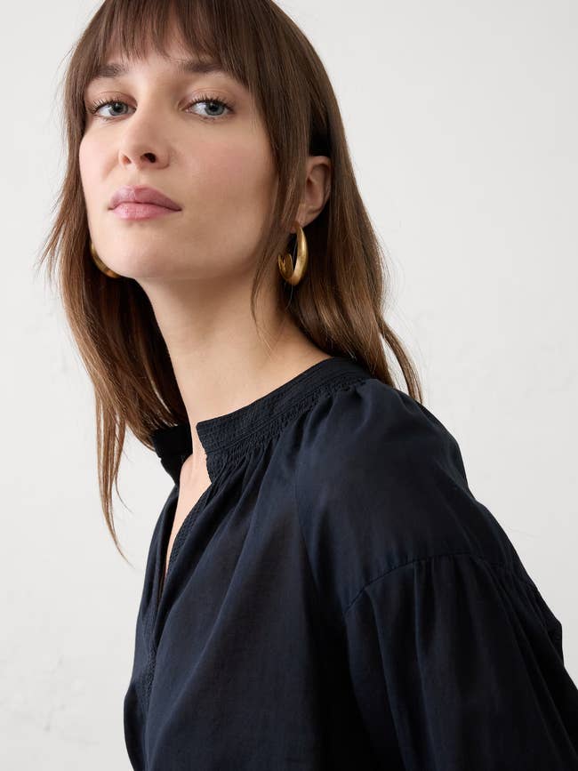 We hope you love our recommendations! While every product is independently chosen by our editors, BuzzFeed and our publishing partners may collect a share of sales or other compensation from the links on this page. You can read more about how our affiliate partnerships work in our Editorial Standards & Ethics Guide. If you have champagne taste but a Capri-Sun budget, these clothes are calling your name. Unless otherwise specified, all sizes in this post are listed in women's. Promising review: "I wasn't sure if this coat would be boxy, but I decided to go ahead and order it, since BRF has a great return policy. I was pleasantly surprised at the quality and fit of the coat. I wanted a coat for my upcoming spring trip to Italy, and I plan to layer it with lighter sweaters and shirts, and the XS is a bit roomier than I wanted. I decided to order an XXS to see if the fit is better with lighter layers. In any case, I think this coat is a fabulous and stylish addition to my spring wardrobe. I live in Dallas, so I anticipate wearing this quite a bit. It's knee-length, so it will be my go-to jacket with jeans and trousers. Also, as other reviewers noticed, it's a light beige and not gray at all, so don't let the color deter you from ordering this." —Donna T. Price: $80+ (originally $200; available in sizes XXS–XXL, petite fits, and two colors/fabrics) Promising review: "The material is very soft but heavyweight, so it offers plenty of warmth. I usually wear medium, but I sized down to small, and the fit is great. Received so many compliments! Wished there were more colors available." —Tiffanie H Price: $52+ (originally $130; available in sizes XXS–XXL, including tall and petite fits, and four colors) Promising review: "I was pleasantly surprised by the quality and how beautiful this bag is in person. It's much more beautiful than it looks in the pics. It's a large-size bag and holds a lot of stuff without distorting the shape of the bag." —Renee B Price: $75 (originally $150; also available in black) Promising review: "Wide leg, seamed beautifully, this fits me to perfection. I'm 5"1, 108lbs and the 00 petite is stunning. I'm going back for the black! It is a little bit tighter in the bust if you are heavy chested." —ShopLady Price: $85 (originally $170; available in sizes 0–18 straight, 4–16 tall, and 00–14 petite, and two colors) Price: $50 (originally $100; available in sizes XS–XL straight, XXS–L petite, and in navy) Promising reviews: "These leather boots are incredibly comfortable. I usually wear a 6.5, but only size 6 was available. The reviews said they run big, so I took a chance, and they fit perfectly. I also love the style, especially the harness detail. I bought a pair of Dr. Martens with a harness as well, but these are far more comfortable." —Su H "Fashionable, affordable, and comfortable! These BR boots were just what I was looking for. The harness hardware details are subtle and anything but ordinary. The boots are not heavy and are very comfortable right out of the box. I ordered my true size 7.5, and the fit is perfect with socks. The price is so good I'm tempted to buy a second pair." —Scorpio Price: $72 (originally $180; available in sizes 6–10) Promising review: "I found my perfect pair of wide-leg pants with cuffs. These look tailored and on-trend. I love them." —Anne M. Price: $36+ (originally $90+; available in sizes 24–35 straight with two inseams, 24–32 petite, and eight colors/washes) Price: $90+ (originally $180+; available in sizes XXS–XXL, tall and petite fits, and six colors) Promising review: "I absolutely love this shirt. It lies so nicely, fits great, lies flat under other tops, silky smooth." —Jenny L. Price: $35+ (originally $70+; available in sizes XXS–XXL, petite fits, and nine colors/patterns) Promising review: "The animal print is very cool, and the shoes are very comfy! True to size." —Hania B. Price: $50 (originally $100; available in sizes 6–10 and two colors) Price: $37.50 (originally $75; available in sizes XXS–XXL and two colors) Promising review: "Really didn't have any expectations when I ordered this dress because there were no reviews yet, and I was really pleasantly surprised by how well this dress fit. Ordered my regular size, and it could be a little on the short side for some, but I love the length for me. Sleeves are the perfect length and not too billowy. Beautiful burgundy color for the season. Will require some steaming, but overall it's a keeper." —Helen Price: $24.97+ (originally $120; available in sizes 0–18 straight, 4–16 tall, and 00–16 petite, and three colors; all colors not available in all sizes) Promising review: "I gifted myself these earrings for my birthday, and I couldn't be happier. They have a timeless, classic style with a modern vintage gold finish that adds just the right touch of elegance. The hoops are a little on the heavier side, but they look absolutely lovely and elevate any outfit from casual to dressy. Definitely a piece that makes you feel special every time you wear it :)" —AD Promising reviews: "I bought this dress in the navy stripe, green, and black. Nice, lightweight cotton and a great price. These dresses will be great to wear once the weather warms up. This dress will look good with any sandal, ballet flat, and fashion sneakers. Very versatile as they can be worn to work, casual events, brunch, dinner, etc." —Sara "Utility dresses can feel stiff or boxy, but this chambray fabric is incredibly soft right out of the package. It has a beautiful, flowy cut that moves with you rather than feeling restrictive. It is both comfortable and classic. I plan on wearing for work and casual." —Britt L. Price: $70 (originally $140; available in sizes XS–XL straight, XXS–L petite, and five colors/patterns) Promising review: "This skirt fits beautifully and will definitely be a staple of my wardrobe! Super comfy and stylish with boots." —Zeta M. Price: $5