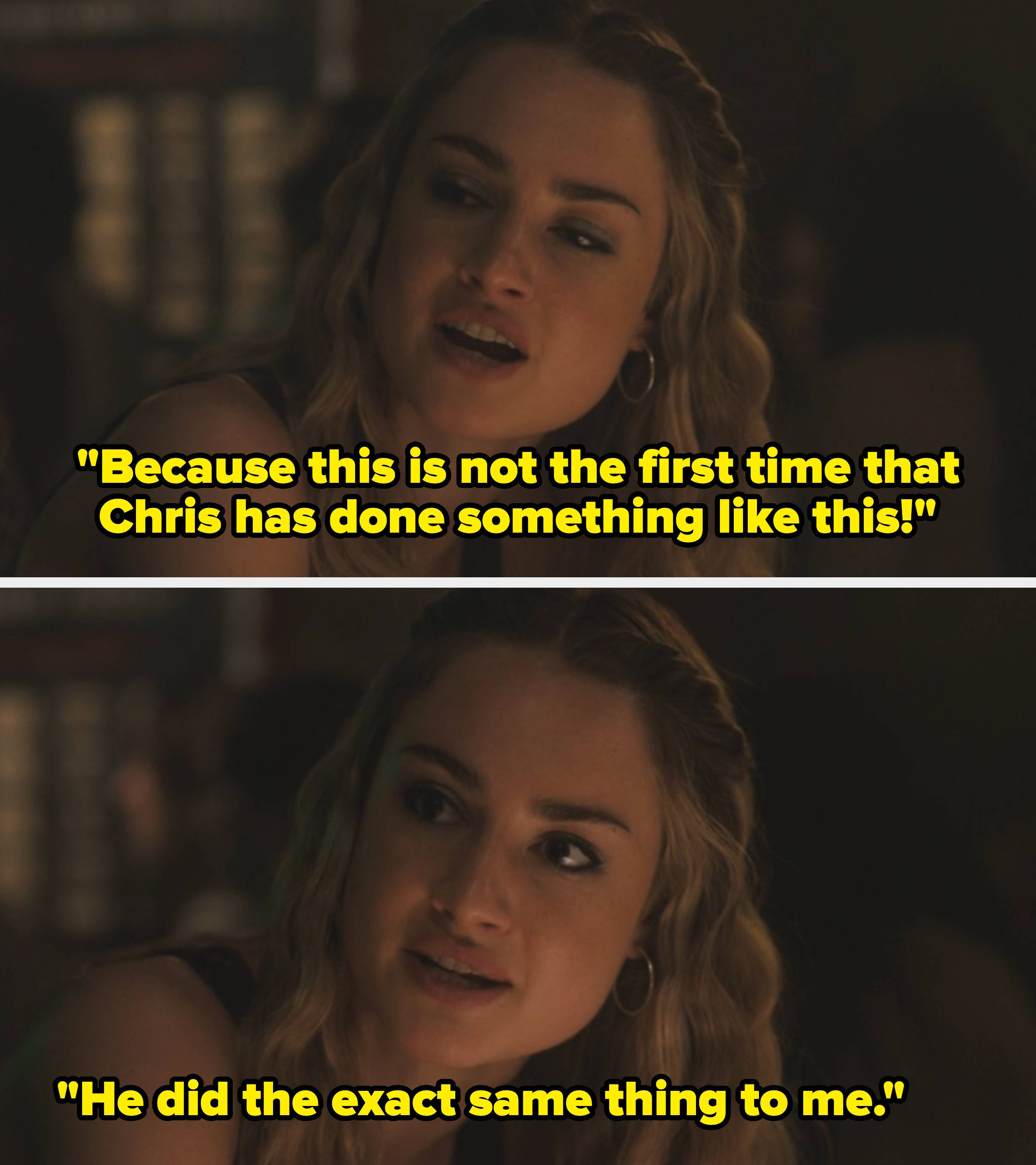 Raise your hand if you can never listen to "Mr. Brightside" the same way again. Warning: This post references abuse, sexual assault, and alcoholism. "Toxic" is a massive understatement. Stephen is a legit sociopath who should be locked up for many, many reasons. Fun fact, though: The actors are dating in real life, and their offscreen relationship is absolutely adorable! 🚨 Warning: MAJOR spoilers ahead, including for the finale!!! 🚨 I haven't been this gobsmacked since Gossip Girl. "I think if I get canceled, it will be because of this," creator Meaghan Oppenheimer said of the controversial storyline in an interview with The Hollywood Reporter. "I pitched it, and it immediately divided the writers' room into two. There were people that were like, 'We have to do that, that’s great.' And then half of the room was like, 'We absolutely cannot do that.' And so I was like: 'This conversation is why we have to do it, because it’s so polarizing.'" This has to go down as one of the most disturbing television scenes of all time. If you or someone you know has experienced sexual assault, you can call the National Sexual Assault Hotline at 1-800-656-HOPE, which routes the caller to their nearest sexual assault service provider. You can also search for your local center here. If you or someone you know is struggling with substance abuse, you can call SAMHSA’s National Helpline at 1-800-662-HELP (4357) and find more resources here.