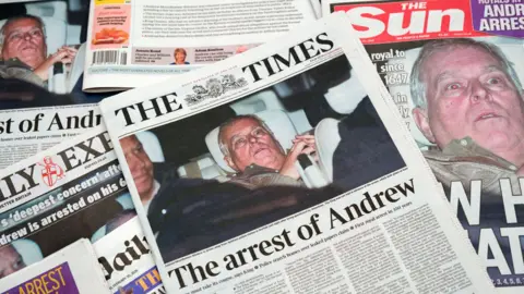 Police searches at Andrew Mountbatten-Windsor's former home of Royal Lodge are continuing on Friday, after he was released under investigation on Thursday evening. The former prince was arrested on suspicion of misconduct in public office and taken to a Norfolk police station for questioning. He has consistently and strenuously denied any wrongdoing. King Charles's brother was released under investigation by Thames Valley Police on Thursday evening, after spending much of his 66th birthday in custody. The former prince was pictured slumped back in a vehicle following his release from Aylsham police station. He was released under investigation, meaning he faces no restrictions and does not have to follow any conditions such as curfews or travel bans. In keeping with normal procedures, Andrew would have had his rights read to him on arrest. Upon his arrival at the police station, a custody sergeant would have been responsible for verifying Andrew's identity and ensuring he was in a fit state to be booked in. Normal procedures may have been complicated by the fact Andrew was probably accompanied by royal protection officers. However, it is likely that police took Andrew's mugshot, fingerprints and a DNA sample, before taking him to his cell. These cells each have their own loo. Andrew probably got two meals while he was in custody, given three meals are served in a 24-hour period. A recent inspection noted Aylsham Police Investigation Centre had more reading material than other stations. It is not clear what legal advice Andrew would have received while being held by police. Given his arrest came out of the blue, he would have had to decide whether to seek advice from the local duty solicitor while he waited for his preferred criminal lawyer to arrive, if he has one. Typically with arrests relating to white collar crime, people are held for a few hours to allow for searches and initial questioning. Being released under investigation does not rule out further questioning at a later date. At some point a decision will have to be made by the Crown Prosecution Service and Thames Valley Police about whether to charge the King's brother with misconduct in a public office. It could be weeks before any substantial decision is made. On Thursday morning, Thames Valley Police said that, in addition to the arrest, it was "carrying out searches at addresses in Berkshire and Norfolk". Unmarked police vehicles were seen arriving at the Sandringham Estate in Norfolk before Mountbatten-Windsor's arrest. In an updated statement following Andrew's release, Thames Valley Police said its searches in Norfolk "have now concluded". In recent weeks, Andrew has set up a temporary home on the estate whilst his permanent residence there, Marsh Farm, is being renovated. Meanwhile, as of Friday morning, police searches at Royal Lodge in Windsor Great Park were ongoing. Until very recently, this sprawling property in Berkshire is where Andrew lived. Dal Babu, a former Metropolitan Police chief superintendent, told BBC News that by arresting the King's brother, officers will be able to "to access computer equipment, files, photographs, any other evidence". He said they will be able to "carry out searches of any premises he owns or occupies, or any other premises he controls, so there may well be searches in other areas as well". The former prince is 8th in line for the throne. However, there are so many other, younger royals in line ahead of him that it is near impossible he would ever become king. Parliament would have to pass legislation in order to remove him from the line of succession. This would require the support of all the Commonwealth countries that have King Charles as their head of state, as it would also affect their lines of succession. Andrew also technically remains a counsellor of state, who could stand in for a monarch who is ill or overseas. In practice, only working royals are called upon to carry out those duties, but in theory Andrew still holds that status. Mountbatten-Windsor was arrested at about 08:00 GMT on Thursday on the King's Sandringham Estate in Norfolk, where he has been staying. The arrest came after Thames Valley Police said it was assessing a complaint over the alleged sharing of confidential material by the former prince with late sex offender Jeffrey Epstein. Officers arrested the King's brother on his 66th birthday. It is the first time the former prince, who has faced numerous allegations over his links to Epstein, has been arrested. It is understood that neither the King nor Buckingham Palace was informed in advance of Mountbatten-Windsor's arrest, by officers from Thames Valley Police. We don't know the specifics of the allegations of misconduct in public office being investigated. However, previously reported allegations include that he had shared reports from trade visits, forwarded a confidential briefing on investment in Afghanistan, and passed a Treasury briefing to a personal business contact. It is possible the police investigation extends beyond the emails seen widely in Epstein-related documents published in the US. Buckingham Palace has previously said it would support Thames Valley Police in their inquiries. Misconduct in public office is an allegation that someone knowingly did something seriously wrong while acting on behalf of the British public, writes BBC News home and legal correspondent Dominic Casciani. There are four "elements" that police must establish to prove the crime has taken place. First, police must show the person they're investigating was a "public officer" and the incident in question was plausibly part of those duties. Secondly, police will investigate whether the suspect "wilfully" neglected to perform their duty or were wilfully misconducting themselves in some other way. That definition has long been a source of legal debate. The next question is whether the action was "an abuse of the public's trust". Lastly, police need to examine whether the