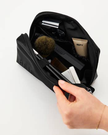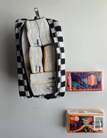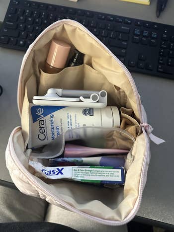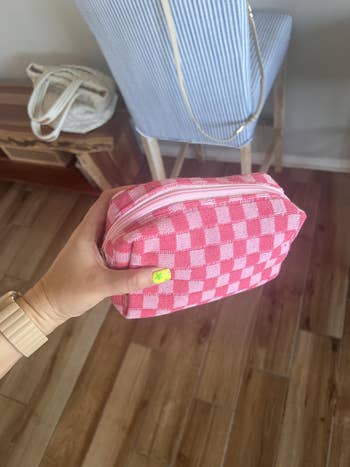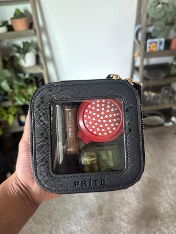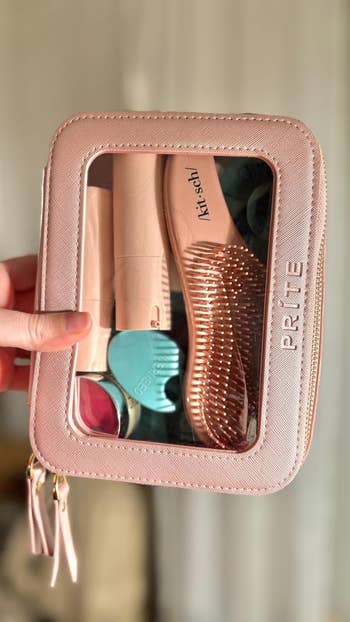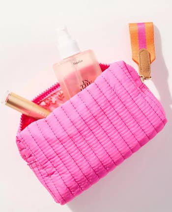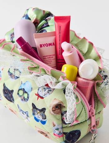 We hope you love our recommendations! While every product is independently chosen by our editors, BuzzFeed and our publishing partners may collect a share of sales or other compensation from the links on this page. You can read more about how our affiliate partnerships work in our Editorial Standards & Ethics Guide. These bags might be small, but trust us — they sure can do it all. Look, we're not all pro makeup artists who need to tote around hundreds of beauty products from place to place, but that doesn't mean we don't want a chic way to take our favorite products on the go. Sifting through the internet's vast array of cosmetic bags can be overwhelming, but thankfully we've rounded up a ton of styles that can suit just about any lifestyle. Frequent flyer? We've got a TSA-approved bag you can breeze through security with. Chronic over-packer? Well, here's a bag that folds out flat, so you can actually see your entire collection laid out in front of you. Whether you're looking for a waterproof option to guard against spills, a quirky cat-themed bag with a tons of purr-sonality, or a whimsigoth throwback moment that can fit alllllll of your '90s-inspired brown lipsticks — we've got the best mini cosmetics bags right here. A Glossier Mini Beauty Bag that's sure to be your on-to-go bestie. With one main compartment, a sturdy zipper closure, and a pocket on the outside, it's got everything reviewers love about the classic Glossier Beauty Bag, like beautiful aesthetics and ample storage — just minimized so it easily fits in your purse, suitcase, or backpack. Promising review: "So great and fits way more than expected! Fits perfectly in my backpack and doesn’t take up much space! Love the color and is so cute! Highly recommend." —Annabelle L Get it from Glossier for $35 (available in two colors). A tiny but mighty checkered bag to stash your night-out lip combo in a safe, zipper-secured place, instead of it just rolling around loose in your bag. And with how bright this gorgeous lil pouch is, you won't lose it (even after a few drinks)! 🍸✨ Promising review: "Super cute!! High quality, fits perfectly in my backpack and holds so much stuff. I love the color, and it matches what is shown in the photos. The bag holds it shape super well, and the zipper is high quality and easy to use. Perfect for staying organized. Only downside to this is that I feel like it might be able to snag easily, so I would recommend putting this in a pocket of your bag with not many other thing. But overall, this is really great for the price." —C.Rose Get it from Amazon for $6.99 (available in two styles and in 22 colors; also available in multipacks). A sleek Béis small cosmetic bag made of easy-to-clean fabric for everyone who has been personally victimized by a powder explosion inside their favorite makeup bag. Plus, there are slots to keep brushes and razors secure, and pockets to hold all your tiniest items (like that lip balm you keep misplacing). Promising review: "I ordered the small cosmetic pouch and I was shocked by how much could fit in there! I use this pouch as my makeup and emergency kit, I take it to work with me everyday. I highly recommend this pouch to use on the go! I will definitely be ordering the next size up to use for travel!" —Amelia C. A compact clear bag in a TSA-approved style so you can pack all your must-have products without worrying about holding up the security line. Reviewers are loving how sturdy it is, btw — they're saying it can withstand being crushed and squished in suitcases without losing its shape or structure. Promising review: "Such a perfect set for skincare and travel toiletries! I was able to fit all of my travel-size Glow Recipe skincare in the mini and all of my travel-size shower essentials in the medium size — and both fit perfectly in my carry-on weekender bag. Excellent quality and perfectly compact." —Michele A Get it from Amazon for $15.99+ (available in eight colors, two sizes, and a set with both sizes). A cloud-like, limited-edition Sephora pillow dream bag that comes with a four-piece brush set, including a fluffy face brush, a smaller eyeshadow brush, a multitasking detail/eyebrow brush, and an *extremely* trendy blurring applicator with a silicone tip to create an airbrushed finish. This puffy lil' treasure has room for all those brushes *plus* your favorite products so you can take your full routine on the go. Promising review: "I’m obsessed! This makeup pouch and brushes is so cute. First of all, the pouch is a scrunchie material and the color is the cutest shade of purple. It’s so soft. The brushes are so nice and surprisingly very good quality. They feel soft yet tough enough to apply makeup. It comes with four different applicators. My favorite is the eyebrow brush. It works so nicely and is stiff enough to do eyebrow shaping. Not to mention that the brushes are pink! Pink and purple, I mean can you ever go wrong with those colors." —xocarmeng A mini vanity bag with a rechargeable LED mirror so you can feel like a pro when you whip out your pocket-size glam station. You can reapply your lipstick in ANY lighting with this cute and compact bag...because the mirror has three dimmable color settings. Promising review: "I love this makeup bag. I was looking for a smaller bag to hold my makeup to and from work. When I saw the mirror I immediately added to cart. It is tiny but mighty! It holds everything! Full size items are not a problem! The color is a beautiful blush pink which happens to be my current obsession. The gold zipper and hardware are very sturdy. The bag overall holds its shape well. The mirror is amazing! Three settings and it can dim and brighten. The mirror is attached by Velcro, can be easily detached to get a closer view. Amazing value for the price. I already convinced my sister to get one too." —Sailor Charlie Get it from Amazon for $12.99+ (available in eight colors). An ultra adorable Urban Outfitters q