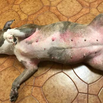 Promising review: "Have a senior pittie who has sensitive skin. Started scratching like mad out of the blue so bad and so hard she made her neck a bloody mess. The vet put her on Apoquel ($$$ and with lots of side effects), which helped a little after a month but did not stop her nonstop scratching. After lots of research switched to Zesty Paws Aller-Immune Bites Senior Advanced. Within a week, all scratching stopped, and her skin had healed. After three months, she is still doing great, and we are keeping her on these chews; plus, she loves them. Do your research and know what your dog's problems and tastes are — we worked with our vet to understand if her issues were seasonal, every day, or related to food allergies." —Jenn W