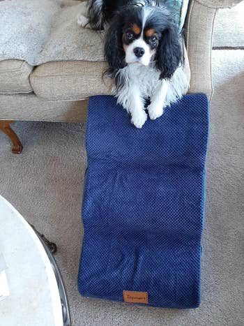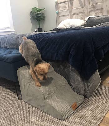 Promising review: "My dog loves these slopped steps! He’s officially a senior and has been having issues jumping up on the sofa. He would just sit in front of it and stare at someone until he got picked up. Well, I got him these stairs for Christmas, and after some initial bribery, he uses them all the time and loves them!! For reference, he’s a ~25-pound Scottish terrier. The stairs are definitely sturdy enough and don’t move around on our carpet. Just perfection!" —Caroline K.