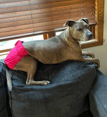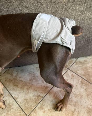 Promising review: "I'm using these on my senior (13.8 years of age) Australian shepherd mix. They do not leak, fit perfectly, and they are super easy to put on. She doesn't mind them. Throw them in the wash, and they are ready to go — looking and feeling like new. I bought another pack of three." —Leigh Anne Groves