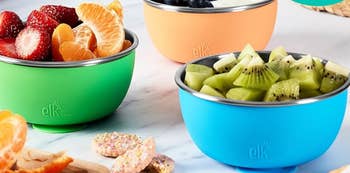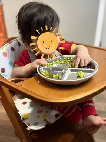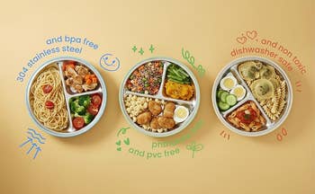 Promising review: "These plates are perfect for transitioning out of a tray style food situation. I didn’t want to get silicone because it makes her food taste weird so I opted for the stainless steel with silicone suction — perfect stickiness to the table and so easy to clean! Nothing has stuck to them so bad while cleaning which is ideal for parent's clean up haha." —Alyssa