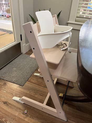 "This has been the one item that we are constantly getting complimented on when people come over. It's so, so easy to put together and even easier to clean. It saves our rug from food that my toddler throws or pushes off her high chair tray. It also provides a nice shelf for my dog to eat all the discarded food from." —Bianca