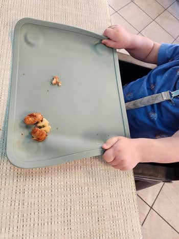Promising review: "My 10-month-old loves to feed himself finger foods but I hate putting food directly on restaurant tables. He tends to throw/knock over plates so I wanted to try this as another option... and we love them! They stick to the table and cover the entire area in front of him so that I can place pieces of food on there. Then when the meal is over, I simply pull the cover up and the mess on the table is contained. Very simple and makes life much easier. Highly recommend!" —Jen ECC