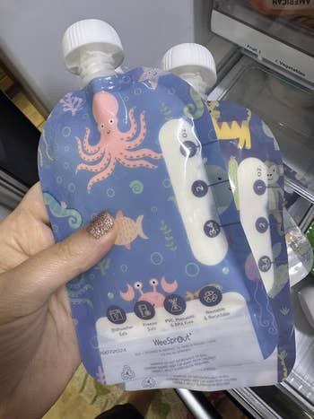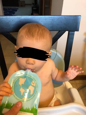 Promising review: "I am OBSESSED. I saw these on a TikTok and ran to Amazon...so glad I did! My toddler loves yogurt/applesauce pouches but started purposely dumping and squeezing the contents out. But these make it absolutely impossible for her to do that without making it difficult to eat! I tested them, and it’s SO easy to drink out of, but I was unable to squeeze anything out. 10/10 recommend. I’m definitely buying more" —Amanda