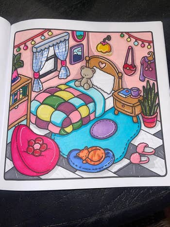 Promising review: "I purchased this coloring book because I enjoy coloring small details. Too much coloring on one thing can get boring, but I love this one for the many different outlines to color! Not only is the coloring book detailed, but its title really does reflect the book — it brings you a cute and comfy vibe when coloring in it! I also appreciate the variety of pages it has, too! Some coloring books give you minimal pages, but this one contains a bunch! I’m very satisfied with this purchase. I highly recommend if you’re contemplating which cute coloring book to order!" —STimm