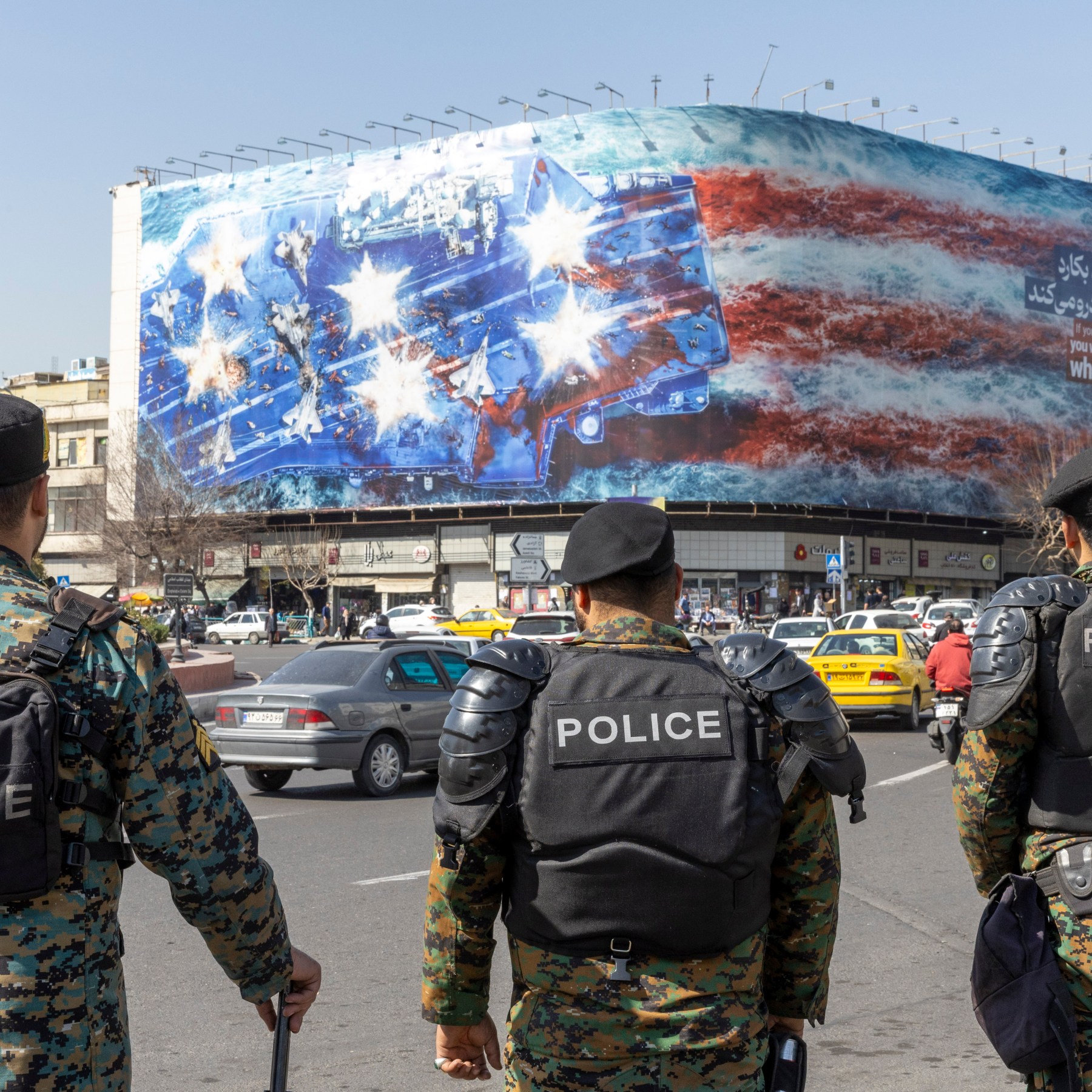 Streets outside the universities also saw a heavy presence by heavily armed security forces, including some filmed being called “dishonourables” after violently pushing back against students at a main entrance of the University of Tehran.
