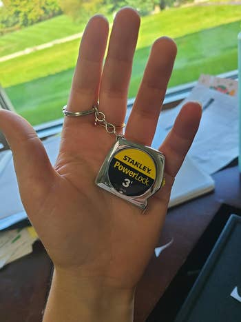 Promising review: "I thrift a lot and often wish I had a measuring tape to compare picture frame sizes, furniture, etc. This has come in handy so many times. It can attach to your keychain/bag, or you can keep it in your car for such an occasion." —KB