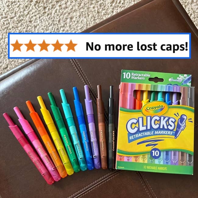 Promising review: "I was pulling my hair out each night searching for marker caps on my floor. This fixed the issue. Easy for my toddlers to click/unclick. They love them. I LOVE them. Great size for little hands, too." —Brittany M.