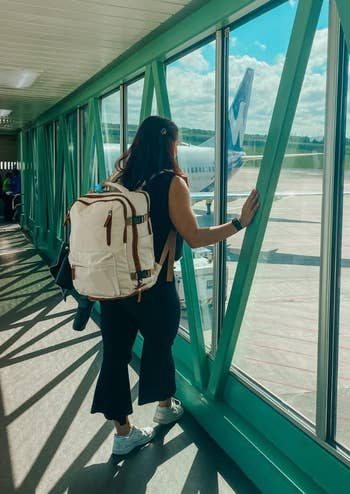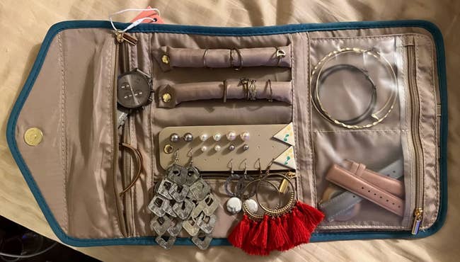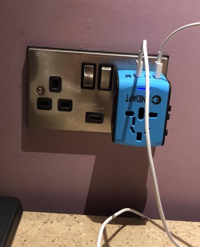 We hope you love our recommendations! While every product is independently chosen by our editors, BuzzFeed and our publishing partners may collect a share of sales or other compensation from the links on this page. You can read more about how our affiliate partnerships work in our Editorial Standards & Ethics Guide. These Skechers sandals can handle a rocky trail and are still cute enough to wear to your dinner reservation. BuzzFeed Editor Elizabeth Lilly owns this bag and says: "I snagged this backpack after hearing my colleague Chelsea Stuart sing its praises. I wanted a bag for some upcoming travel (2.5 weeks in Europe with *just* carry-on for five flights) that opens up like a suitcase for easier packing. Since buying, I've taken it on two long weekend trips with no complaints. In fact, for both of those trips I packed MORE than I needed. Inside, you'll find a mesh zippered pocket and a plastic pocket perfect for your toiletries. I can fit enough wet toilet toiletries in the second pocket as I'd be allowed to carry-on for a plane. In the mesh pocket I put other necessities like cotton swabs, medicine, eye glasses, etc. The main compartment is deceptively deep so you can easily roll clothes and Lego-fit them in together without using packing cubes. In fact, I fit all of the stuff in the second picture in that section (a romper, PJs, a bikini, sunscreen, five pairs of undies, a pair of jean shorts, nap dress, three pairs of socks, two pairs of sandals, two T-shirts, a slip skirt, sleep mask, curling iron, mini flat iron, makeup bag, and tote bag). AND it has stretchy X-straps to keep it all secure like you'd see in a roller suitcase so when I unzip it, everything stays put. But before I forget, there's a separate cushioned laptop pocket close to the backpack straps that I found works well for books or a Kindle if your travel leaves you laptop-less. I love that this backpack has DEEP side pockets so your umbrella or water bottle won't fall out. In fact, I stuck a flashlight and an umbrella in one side pocket. (You could always use a flashlight.) Plus! It has a generously sized pocket on the front of the backpack with easy access for sunglasses, snacks, writing pens...all sorts of those little extras you need to access quickly. To top it all off, the backpack straps and top handle are STURDY. I felt totally secure toting it around and slinging it into overhead storage compartments on the trains. I love the look and construction of it with faux leather and sturdy black canvas, and the trolley passthrough to easily fit on my roller suitcase I'm about to drag through a bunch of airports. This isn't the cheapest backpack option but if you're a frequent traveler, you'll get so much mileage on it and seriously save on some baggage fees, making it well worth the cost. This backpack and I are going places, for sure." Get it from Beis Travel for $118 (available in four colors). Promising reviews: "Lots of space. I bought this for a business trip so I could carry my laptop and clothes for two nights and not check a bag at the airport. This worked perfectly and looks nice." —Angie J "This is the second bag we ordered. It holds sooooo much. We use a carry-on and this bag for our trips to Florida. No more checking bags." —Georgette Get it from Amazon for $22.29+ (available in four sizes and 30 colors). EverSnug is a small business that makes innovative products that keep you cozy on the go. Promising review: "I have never missed taking this blanket on a trip and it has saved me from cold planes to hotels. It's soft, comfortable, and convenient. Easy to clean. Buying more!" —Hayley Get it from Amazon for $29.95 (available in seven colors). BuzzFeeder Elizabeth Lilly says: "I used this digital luggage scale when packing for a trip to Iceland — check out my demo of how it works on TikTok!" Promising review: "We use this in every trip to avoid paying for extra weight as we travel internationally quite often. I have tested in several ways and also always note the weigh number in the airport. After several trips, I can say that the accuracy of it is right within 2 lbs. I have it for almost two years and I am still using the same batteries." —Cass Young Get it from Amazon for $9.89+ (available in five colors, a pack of two, and another style). Each pack comes with three packets. And because they *are* liquid, they'll easily slide into the side of your toiletries bag. Promising review: "Taking these out of the country to wash under things is exactly the right size." —Laura Wilson Get nine packs from Amazon for $6 (available in two scents and other packs). But remember that this is not a voltage converter! Promising review: "I am a digital nomad so I travel full-time around the world. I have a lot of devices to charge (laptop, Kindle, phone, backup battery, portable wi-fi device, camera, the list goes on). A lot of times hostel bunks or hotel rooms only have one outlet and with the previous adapter I was using, I had to charge one device at a time. I used to literally set my alarm to wake up in the middle of the night and switch devices so that I could get more than one device fully charged overnight. I did my research finally and settled on this one because it is universal and has four USB ports. What a GAME CHANGER. On my latest trip I was able to charge all my devices at once and it made traveling so much smoother. It seems well made and good quality, too. Definitely recommend for my digital nomad and traveling peers. Happy travels! :)" —Maggie A. Get it from Amazon for $15.99+ (available in two colors and one with a USB-c port). Promising review: "This little kettle is perfect for travel. It folds up small, so it takes up very little room in your suitcase. It heats up water quickly, and is a snap to clean. If you like coffee or tea in your room this is a must have." —Melsdude Promising review: "What an adorable and efficient way to pack your jewelry! I have been hesitant even to bring jewe