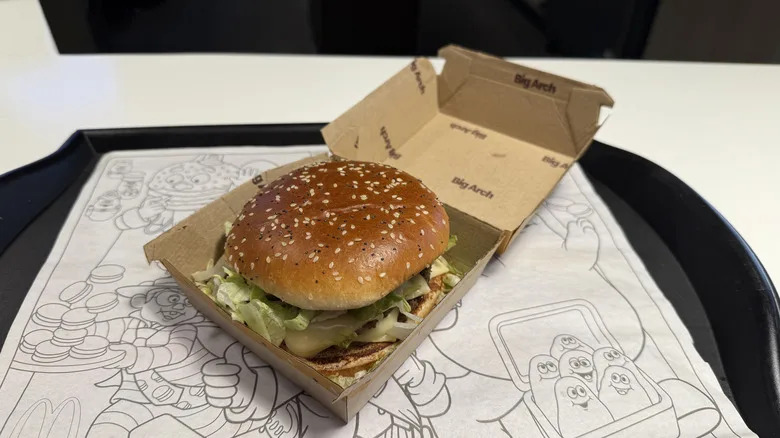 McDonald's is constantly striving to fulfill a balance of serving nostalgia, while moving forward and delivering new flavors to meet modern tastes. In the last year alone, it caved to fans' demands and resurrected the Snack Wrap, and even blew off the dust and rust of one of its most memorable Happy Meal toys ever — Changeables. McDonald's has never been afraid to follow a trend, like its recent dip into Hot Honey territory, or even import an idea that has worked well overseas, like McShaker Fries. Its next release also takes its cue from a popular McDonald's item from abroad, in what has now become perhaps the most anticipated new McItem of them all — the Big Arch.