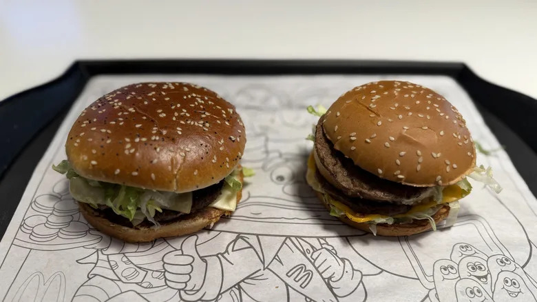 Over its illustrious history, McDonald's has hit a couple home run burgers that dwarfed the size of its classic original, with the Big Mac going national in 1968, and the Quarter Pounder weighing in since 1973. Those remained the golden arched standard for decades, although the chain has often tried to introduce the next best and biggest thing over the ensuing decades to find a home on its menu. Burgers like the McD.L.T. and McLean Deluxe have come and gone, and have mostly been forgotten. There was even one called The Arch Deluxe, but it wasn't luxurious enough to stick around.