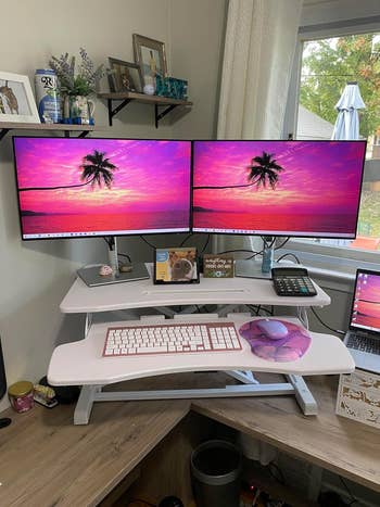 We hope you love our recommendations! While every product is independently chosen by our editors, BuzzFeed and our publishing partners may collect a share of sales or other compensation from the links on this page. You can read more about how our affiliate partnerships work in our Editorial Standards & Ethics Guide. An electric standing desk, memory foam armrest pads, and more little upgrades WFH-ers say they can't live without. Working from home has its benefits (ok, a ton of them), but it also means your work setup might not be totally optimized for sitting and focusing on a computer for eight hours straight. These small upgrades have the stamp of approval from remote workers who feel so strongly about them, they call them "lifesavers" — so it's worth taking note. From a standing desk (or standing desk *converter*) to a mini desktop whiteboard and ergonomic chair alternatives, these home office items can make a huge difference in your comfort and productivity. Promising review: "It is a lifesaver. If you can't fit or afford a full sit-stand desk, this unit has been going up and down a few times a day for 6 months strong. Also if you think you will be standing for more than a couple of hours a day, I assure you no. That's why the manual system is great — whenever you are tired, just grab the handle and place it down quick, it doesn't require thinking or waiting." —Dave Get it from Amazon for $129.99+ (available in three sizes and two material types). I have a FlexiSpot electric standing desk at home (this one, specifically) and love it — it's a great brand, and mine hasn't given me any issues over the past few years. Promising reviews: "This desk is a lifesaver. It's sleek, solid, and lifts and lowers with ease. It will be the perfect addition to your workspace." —Rebecca Jeanette "After assembling it, I am thrilled I chose this desk. With a press of a button, I can raise and lower it to appropriate heights for either comfortably sitting or standing (I'm 5'10"). The material itself is very sturdy. There are NO drawers, which, after 20 years of having the other home desk and having desks at work, I realized that drawers do nothing more than collect and store junk. Can't do that with this desk as this desk encourages minimalism and storing that junk somewhere else." —David Taylor Get it from Amazon for $169.99+ (available in five sizes and 10 styles). Bonus: It doesn't take up much space at all and can be stashed right underneath your desk, so it's not an eyesore like most workout equipment! Get a look at it on TikTok as part of a WFH standing desk setup! Promising review: "Having a limited space for my home gym, this thing is an INCREDIBLE addition!! I work from home and having the ability to hop on this thing regularly throughout the day is a lifesaver. The quality is top-notch, no issues whatsoever in the 3 months I’ve had it. Not having the room (in both my space and budget) for a treadmill, having cardio equipment that allows for a natural standing, upright position is critical for keeping my back healthy. The workout you get is also great for any and all fitness levels." —Brent Williams Get it from Amazon for $52.99 (also available in three other styles). See it in action in this TikTok! Its speed range is 0.5–6mph and its weight capacity is 220 pounds. Promising review: "Easy setup, good quality, easy to move. I’ve been using this under my desk in my home office for roughly 8 weeks now and it’s been a lifesaver! Now I can get my steps in while I’m answering emails and sitting in Teams meetings. Highly recommend if you’re looking for a budget-friendly option." —Amazon Customer Get it from Amazon for $289.99 (available in four colors). It has two HDMI ports — be sure to pick up a USB-C hub if you're planning to connect a MacBook. Promising reviews: "Bought the largest screen offered and have been using it to work from home for over a month. It has been perfect for my needs and probably will ruin me if I ever go back to an office. This screen saved my life." —V.G. "Just set this monitor up, and so far it’s earned all 5 stars! It was easy to assemble, it’s compatible with my MacBook Pro (with a USB-C adapter), and the picture is great! I just wanted another monitor for when I work from home, so having something available that was affordable like this was perfect for what I needed." —Allison H. Get it from Amazon for $77.97+ (available in five other models, including a 27-inch size). This stand fits any laptop from 10–15.6 inches and can be easily disassembled into three parts for easy transportation. Promising review: "Lifesaver ❤️ I had a deep turtle neck before using this laptop stand, and no more after using this item. This laptop stand saved my life. I cannot work without it. Thank you." —Andrew Ko Get it from Amazon for $15.29+ (available in nine colors). In the six-piece set, you'll get two 3"x3" bins, two 6"x3" bins, and two 9"x3" bins. Promising review: "These are lifesaving for clutter. My bathroom vanity drawer has always been a mess, and I can never find what I need. This product is amazingly perfect, so much so I bought a second set for one of the drawers in the kitchen." —Gentles Lewis Get a six-piece set from Amazon for $12.99 (also available in two larger sets). I've had this exact lumbar support pillow since 2018, back when I was still working in an office, and I can't express enough how much it's improved my posture and reduced back pain after long hours of sitting. I initially got it because I was stuck working in one of those awful office chairs with zero lower back support, and years later, I still use it at home. It fills the curve of your spine *perfectly*, and you can adjust the positioning as needed, with straps that go around the back of your chair to hold it steady. I personally use it in conjunction with an ErgoFoam footrest, and I never have back pain after working anymore. Promising review: "Saved my life. I b