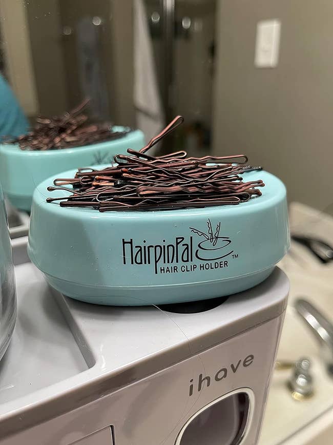 Promising review: "I bought this because I always lose bobby pins. This has also worked great because my bathroom counter is very dark and it's hard to see if there are bobby pins, so this holder not only keeps my bobby pins together, but it makes it easier to see them when I need them." —Olivia Bowman
