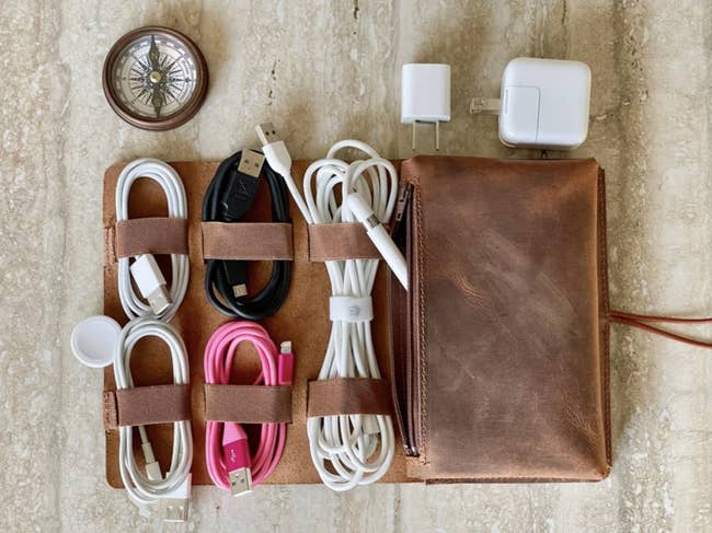 Promising review: "I get compliments on my leather cord organizer all the time at work. I do home visits with my job and this case makes it so easy to quickly find what I need on the go. It's a great design and fits nicely in my travel bag and tote purse. It's great quality. I'm looking forward to getting a lot of use out it." —Marci