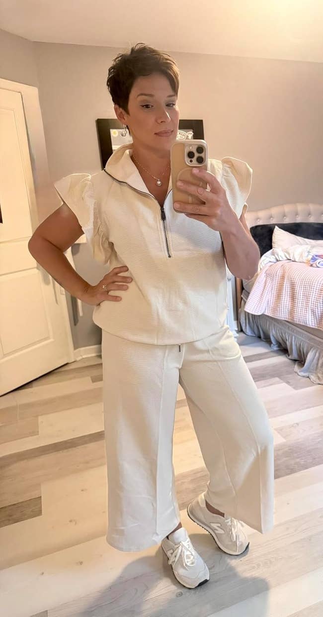 We hope you love our recommendations! While every product is independently chosen by our editors, BuzzFeed and our publishing partners may collect a share of sales or other compensation from the links on this page. You can read more about how our affiliate partnerships work in our Editorial Standards & Ethics Guide. If you stay ready, you don't have to get ready. And you'll always be ready with these sets. Unless otherwise specified, all sizes in this post are listed in women's. Promising review: "Buttery soft is an understatement! This two-piece set is so unbelievably soft and comfortable! I honestly feel like I’m wearing a cloud!!! I’m 5’9 150 pounds, and I’m wearing medium. Could size down to a small, but I like the oversize look for comfort. It’s not super thick, which I love because I’m always hot! The color I have is sage green, and it’s perfect for fall and winter! I’m certain this outfit will last as long as I need it to! The material is fantastic! 1,000% recommend this item." —Dana Merida Get it from Amazon for $39.99+ (available in sizes XS–XL and 17 colors). Promising reviews: "Soft, warm sweater knit. I’m so glad I got this set! It’s like putting on a warm hug when I get home from work. ;) And you can wash it in the washing machine and dry it in the dryer, hooray! I’m 5’7”, 120 pounds: medium fits with a slouchy look. This is perfect for after work and before pajamas." —Mrs. Movement "Been wearing this since I received it, and I have to say I am obsessed. The fabric is so nice, and I've gotten so many compliments on it from random people. I need it in every color at this point!" —Kindle Customer Get it from Amazon for $47.58+ (available in sizes S–XXL and 14 colors). Promising review: "I want this set in every color. They are super comfy. If you like to sleep in clothes but hate getting hot, this is a great set. If you just want something to lounge around in, it’s also perfect for that. I’ve washed them many times, and they’ve shown no signs of wear." —India Get it from Amazon for $24.99+ (available in sizes XS–XXL and 10 colors). Promising review: "Perfect outfit to dress up or down with sandals or sneakers. I bought this for a trip to Greece to wear while shopping. It was very comfortable. I also like how I can wear the pieces separately!" —Cori Get it from Amazon for $29.99+ (available in sizes XS–XL and 23 colors). Some reviewers find that this set runs big, so consider sizing down! Promising review: "Love, love, and love this matching two-piece set. It runs true to size, is very warm, and is not heavy. This is a set that can be worn around the house, a set to be worn running errands or heading out to a sports game, or just whatever you want. This outfit is just super cute, hands down, great value for the money. I even get asked every time that I wear it about where I purchased it. (Thank you, Amazon.) I will be ordering it in a few other colors." —Cee Banks Get it from Amazon for $45.99+ (available in sizes S–XXL and 12 colors). Promising review: "Cute set that is very comfy and perfect for travel. I wore it for 40+ hours and felt comfortable the whole time. Love the bright color and the soft material. The ribbed cotton style fabric looks nice and not cheap like some other fabric types can. The pants are long (I'm 5'2") but high-waisted enough that they can just be pulled up, and this also gives more coverage with the cropped top. Highly recommend, and I will get this in more colors. Do make sure you wash it by itself in cold water the first time, as the color does run at first. It's fine now." —Lucy Marie Get it from Amazon for $31.49 (clip the coupon on the product page to get this price; available in sizes S–XXL and 20 colors). Promising review: "I was pleasantly surprised by the amazing quality and perfect fit of this outfit! The material feels high-end, and the style is super trendy. It’s the perfect sporty-chic set for running weekend errands, grabbing coffee, or just lounging around the house in comfort. I’ve gotten so many compliments already — definitely worth every penny!" —Kim Simpson Get it from Amazon for $35.90+ (clip the coupon on the product page to get this price in select colors/sizes; available in sizes S–XXL and 10 colors). Promising review: "This was cuter than I expected. It’s slightly oversize, and I love it like that! I got a size small. I’m 5 feet, 110 pounds, and I probably could have gotten an XS too, but I left room for shrinkage and the boho oversize feel. I bought mine in the cream color, and it is super comfy and adorable. The pieces can be worn separately as well. Two thumbs up!" —Anonymous Get it from Free People for $98 (available in sizes XS–XL and six colors). Promising review: "This outfit exceeded my expectations. It is super soft and more of a sweater material than a traditional sweatsuit material. Will be ordering this in additional colors. This is the perfect casual outfit to wear when visiting friends for a home get-together or for just lounging around the house when you want to be warm and comfortable." —Mrs LG Get it from Amazon for $37.59+ (available in sizes S–XL and 20 colors). Promising review: "Beautiful set, super comfortable, and excellent quality. The fabric is soft, not transparent, and the striped design with a collar gives it a modern and elegant touch. Ideal for being at home or going out casually. The size corresponds perfectly. I loved it, I recommend it 100! 💯" —Liz Salazar Get it from Amazon for $33.99+ (clip the coupon on the product page to get this price in select colors/sizes; available in sizes S–XXL and 11 colors). Promising review: "Love this outfit. Weekend at Bernie’s. Or maybe I had this same outfit when I was 8. It’s comfy, summery (or vacation-y), love the collar. I’m usually a large, but medium fits well. The waistband was slightly more snug than I’d usually prefer, but if I had gotten a large, I think it 