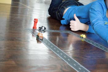 Promising review: "Sticky level is about equal with painter's tape, so there’s no worry about restricting where to use it. It’s great for cars, pretend play, etc. A perfect rainy day distraction!" —Jennifer Horne