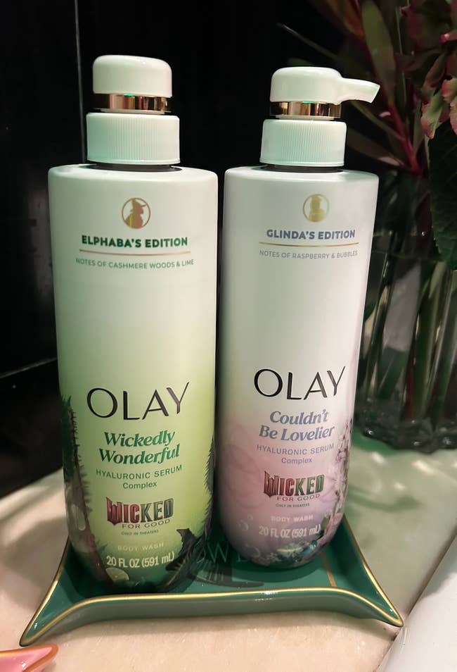 I am a MASSIVE fan of Olay's hyaluronic serum body wash, since I am a dry skin girly with no patience for actual lotion. I got the chance to sniff test both of these at a Wicked early product premiere the other day, and be still my bougie little heart, they smell DECADENT. The raspberry in Glinda's is the perfect amount of sweet without being overly coy, and the lime adds such an unexpected, refreshing zest to the typical cashmere woods scent in Elphaba's.