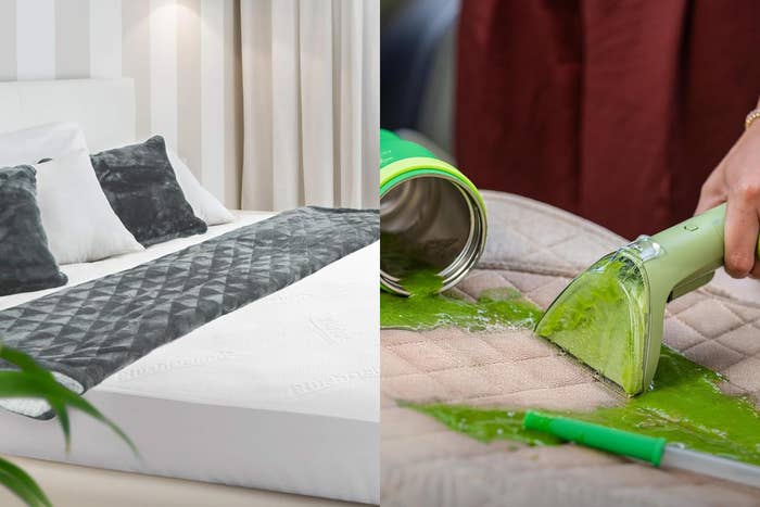 We hope you love our recommendations! While every product is independently chosen by our editors, BuzzFeed and our publishing partners may collect a share of sales or other compensation from the links on this page. You can read more about how our affiliate partnerships work in our Editorial Standards & Ethics Guide. Thankfully, you’ve got tons of mattress cleaning options on the market that make it easier than ever to breathe easier and sleep easier. From UV-powered vacuums to concentrated sprays, here’s exactly what reviewers swear by. Manal Mohammed, a medical microbiologist and senior lecturer at London’s University of Westminster, previously told us that “[a]n average mattress can have thousands of dust mites that produce millions of droppings,” feeding on particles like dead skin cells, saliva, sweat and food crumbs that can exacerbate allergens. The antidote? A mattress-friendly vacuum like this one, that has a built-in UV sanitation light to remove over 99.9% of harmful particles . Promising review: “This vacuum cleaner is excellent for cleaning the bed. There are always some hairs, crumbs, and dust on the bed. My child has rhinitis, and dust always makes him sneeze. Cleaning the bed with this vacuum cleaner every morning after waking up is very helpful." —haiting Get it from Amazon for $59.99 (available in three colors). Instead of throwing out your back maneuvering your full-sized vacuum over your mattress, invest in another solid bite-sized option that gets the job done thoroughly. It reaches 140 degrees to penetrate deeply into your mattress’ thick fibers and it offers powerful suction to rid the surface of dust and debris. A built-in UV-C light works to sanitize your mattress of microbes and mites so you can sleep soundly. Promising review: “This mattress vacuum works incredibly well and the difference is noticeable right away. The suction is strong, the UV-C light gives extra peace of mind, and it pulls up dust you didn’t even know was there. The design feels solid and easy to handle, making it simple to clean beds, couches, and other fabric surfaces without any hassle. I also love that it heats up quickly and has a long cord so you can cover a whole room without constantly unplugging. It feels powerful, effective, and perfect for keeping a cleaner sleeping environment especially if you have allergies or kids. Truly a great buy and one of those tools you don’t realize you need until you try it.” —Badchemist Get it from Amazon for $74.99+ (available in two colors). This mattress cover won’t exactly clean your mattress of existing dirt, but it sure will prevent any more from accumulating. Made of premium bamboo, it’s designed to be breathable, noiseless, waterproof and protective against mites and allergens. It’s also said to add an extra dose of plush comfort to your bed setup for fewer aches and pains upon waking. Better yet, popping this mattress cover into the wash is far easier than tackling the entire mattress itself. Promising review: “I don’t always write reviews but I recently bought this mattress protector for my new bed. My dog decided to pee on my brand new bed and thank God I had this mattress protector on. There wasn’t even a hint of dog pee on my bed and it looked like it was there for a few hours. I threw that away and bought a brand new one. Highly recommend!” —ruth ferreira Get it from Amazon for $27.99+ (available in sizes twin–California king and two crib sizes). It’s not hard to see why the Bissell Little Green portable upholstery cleaner has reached viral levels of popularity. It works to restore upholstered surfaces (like mattresses) back to their like-new state through the brand’s proprietary triple-action deep cleaning solution. Simply spray it, scrub it and use the hose tool to suction the mess away. Promising review: “Works great! So far, I have used it on my couch and mattress. It is so easy to use, and I was amazed at how well it worked. My couch looks brand new and my mattress looks so much better. This little machine actually makes me excited to clean!” —Lawren F Get it from Amazon for $99.99 (also available in four other sizes/styles). Tackle stubborn stains with ease using this mega-popular mattress stain remover that doesn’t require vigorous manual scrubbing to perform. Simply dilute it into a 20 to 1 water-to-formula ratio, apply it directly to the stain and use a gentle brush or vacuum to manually lift it off. Spray it all around your home for cleaner surfaces everywhere you look and live, from your couch to your car and your rugs to your running shoes. Promising review: “I highly recommend this stuff for a mattress, car, carpets or anything that needs stain removal! If you have a mattress that has lots of stains, get more than one bottle! Luckily none of my stains were bodily fluids — they were caused by dirty animals in the bed and probably a spill or two by a grand baby. They are mostly pet related, and the mattress had been through several moves in the rain on a dirty truck. Anyways, just get it. Several bottles!” —JDowell Get it from Amazon for $11.97+ (available in two sizes). Whether you’re in the throes of potty training, live with pets or experience overnight incontinence, you’re in luck with this powerful urine remover. The mattress-friendly solution uses hydrogen peroxide to break down and lift away stains and odors associated with urine accidents, and is designed to leave your sleeping surface smelling better. Promising review: “I never write a review nor share some of my story. I have a medical condition that causes some accidents, I have tried using every kind of products even pet products to get rid of urine stains. This lifted the stain with ease and my mattress looks SO much better. Very satisfied with this product and will definitely keep it on hand for future use.” —Bobbie Bright Reviews for this post have been edited for length and/or clarity. BuzzF