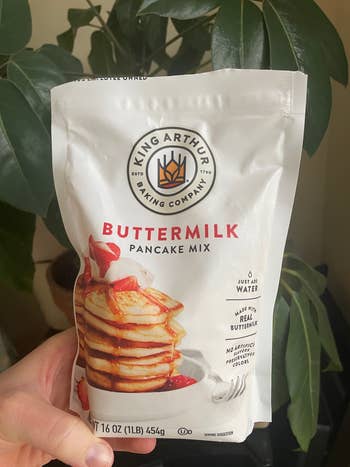 "Now that I'm a parent, I've placed any plans for elaborate cooking on hold indefinitely. But we still gotta eat! So in my search for easy but restaurant-worthy solutions, I nabbed a bag of King Arthur Baking's Buttermilk Pancake mix — and it outshines the two other pancake mix brands I've tried, while remaining equally simple to make. It contains real buttermilk, and you can smell and taste it, and tell in the fluffy, almost cake-like texture of every bite. For the best experience, I recommend the directions for 'richer' pancakes with an egg, milk, and oil, though you can make them with just water. Every time I cook them, my kitchen smells exactly like a restaurant we go to sometimes that always has a weekend morning wait for their pancakes, and I can confirm, these are *that* delicious!" —Natalie Brown
