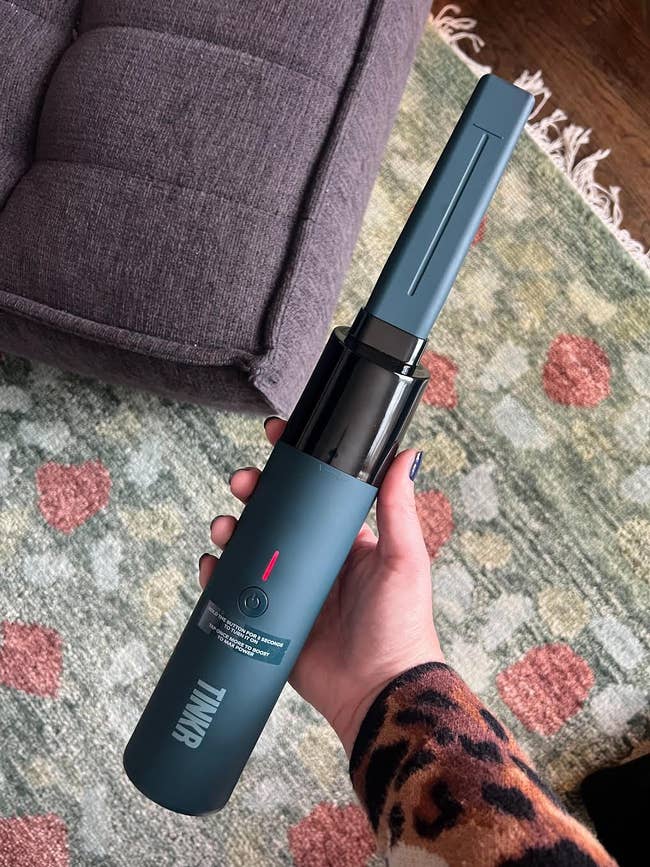 "I recently got this handheld mini vacuum, and it has quickly worked its way into my daily routine. First of all, it actually looks good. I love the green color (there's also a navy option), and unlike most handheld vacs, this one isn't an eyesore you feel the need to hide. It's genuinely tiny and breaks down to fit neatly into the included storage container. It charges via USB-C, which is perfect since I already have those cables around the house, and while it comes with three attachments, I have only ever used the nozzle. The battery lasts longer than you'd expect, recharges quickly (under two hours!) and I've even used it to clean crumbs and sand out of my car. I didn't expect to rely (and love) a mini vacuum this much, but here we are." —Sally Elshorafa