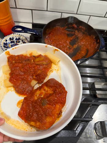 "I immediately grabbed the Cacciatore Italian Simmer Sauce because chicken cacciatore is something I usually let the ~professionals~ handle at a restaurant — but honestly? This made me feel like I’ve been hiding serious chef skills. It’s almost suspiciously easy: sear some chicken, pour in the sauce and let it simmer, boil some pasta. Done. And the result? A rich, tomato-y dish with the perfect balance of savory depth and a little zesty kick. It tastes layered and cozy — which is exactly how I aspire to feel after a long day at work."  —Crystal Ro