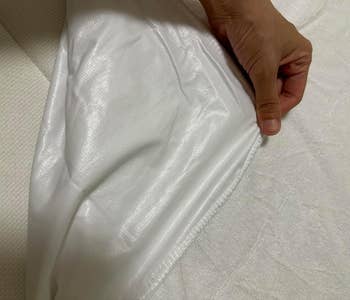 ...Anyway, it's also got an absorbent and waterproof backing that is both stretchy and tear-resistant, making it both toss-and-turn-resistant *and* durable. And, on top, it's got thick yet fluffy padding for pillowy comfort sure to ease you into a deep slumber.