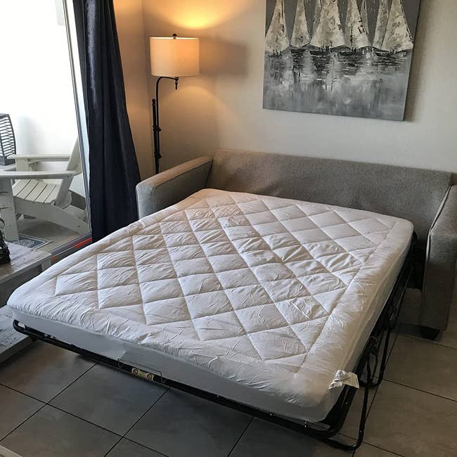 Promising reviews: "Fits nicely on a queen-sized 4-inch sofa bed mattress! Gives me peace of mind when guests stay over! They can eat, drink, and sleep without worrying about wrecking the mattress!" —Shopping Mom