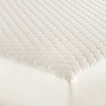 This wool mattress protector is top tier, babes. Featuring 200-thread-count organic cotton, this mattress protector can offer up to a 70% reduction in body heat retention — a sweat-free sleep *is* possible! And because it's made of natural and durable wool fibers, it is highly breathable and can probably outlive your mattress (which has likely seen better days, no offense).