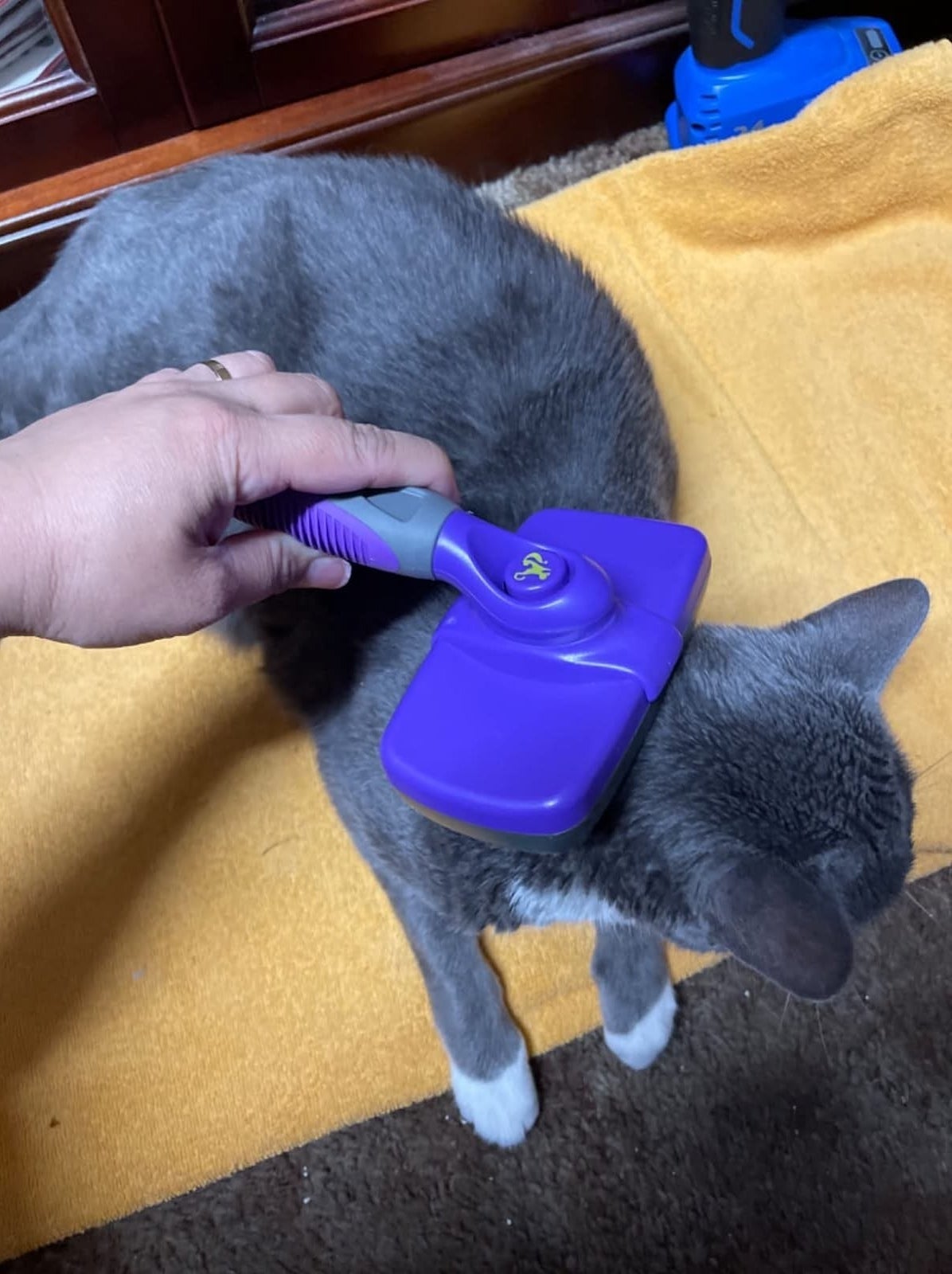 Promising review: "I was absolutely amazed by how well this brush works on my white cat Pinky. Her fur is luxuriously thick but fine. This brush makes our nightly brushing sessions much more enjoyable and productive. The button that separates the fur from the bristles is the best part of this brush. An added benefit is that my cat loves to rub her face on the bristles. Caution: be careful not to entangle the whiskers!! I highly recommend this product, especially for large cats." —Amazon Customer