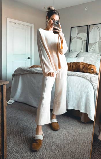 We hope you love our recommendations! While every product is independently chosen by our editors, BuzzFeed and our publishing partners may collect a share of sales or other compensation from the links on this page. You can read more about how our affiliate partnerships work in our Editorial Standards & Ethics Guide. Why, yes, fleece-lined Crocs are in this list. Depending on where you live, you might still have quite a few chilly days ahead of you (excuse me while I take a quick pause to shake my fist angrily at the damn groundhog and his prediction of more winter). ANYWAYS, you might want to check out these comfy-cozy, snuggly-buggly products that'll make you want to happily curl up like a cat in front of a fire. I'm talking "Cloud Socks," coordinated sweatsuits, faux fur slippers, Dreamlux leggings, and so much more. Promising review: "If you want the softest, yummiest robe ever, this is for you! It engulfs you in softness, it breathes so you don’t *glisten* while wearing it. Mine is floor length, so I can pull my legs up on the couch or chair, and relax! I wish you could slip it on right now and feel its softness! It washes up beautifully, too!" —Luvstawkin Get it from Amazon for $112.99+ (available in four colors and three sizes — size 1 is recommended for people 5'6" and under, size 2 for 5'6" to 6', and size 3 for people over 6'). Promising review: "These soft socks are like walking on clouds! I put them on and instantly felt the warm, cuddly comfort — they’re so soft, I never want to take them off. Perfect for chilly mornings or lounging around the house, they make me feel like I’m wrapped in a hug. The best part? They’re super cute and come in fun colors and patterns that add a little extra personality to my outfit. Whether I’m relaxing with a book, watching my favorite show, or just need some serious comfort, these socks are my new go-to. If you love feeling cozy and want to add a splash of fun to your sock drawer, these are a total must-have. Soft, stylish, and oh-so-snuggly!" —Shannon Get it from Amazon for $9.05+ (available in six styles and multipacks). Promising review: "Super soft and cute! I love the style of these cardigans, but you definitely need to be careful with washing/cleaning them since they pill easily. They also run small — I ordered a large for a regular fit, but if you want it to fit looser, you might want to size up two sizes." —remotemaya Get it from Urban Outfitters for $39 (available in women's sizes 2XS–XL and five colors). Promising review: "Much more than expected. Great fabric. Looks very expensive. Many compliments. Can dress up or down. Very comfortable. The top was a bit big on me. I washed the set on a gentle cold cycle, hung it to dry, and when it was almost dry, I threw the top in the hot dryer for a bit to bring down the size, and now it fits perfectly. To remove wrinkles, just pop them in the dryer with a damp cloth for a bit. Very stunning set. LOVE IT!" —KT Get it from Amazon for $48.99 (available in women's sizes S–XL and in 18 colors). Promising reviews: "This hat makes my outfit look 10 times better. I look so expensive and put together when I wear it. I feel like I should be walking around Europe!!! It is so soft, and I get so many compliments. Definitely order!!" —Meg Smith "I wore it for my cousin’s 30th birthday costume party! It kept me warm in Detroit and looked good with my Bratz doll costume." —Amazon Customer Get it from Amazon for $16.99 (available in 11 colors). Promising review: "Bought this set for my teen daughter and she loves it. Super soft. Not much compression and support, but that only makes it comfier. Great for yoga, walks, or running errands." —anonymous Get it from Old Navy for $11 (available in sizes XS–4X and nine colors) and snag the coordinating High-Waisted PowerChill Side-Stripe Biker Shorts for $12! I got these for my kids over the holiday season! They've been great for running quick errands and have kept their little tootsies nice 'n' warm (and spared me from running up and down our home's stairs to grab socks). Promising reviews: "I love my lined Crocs. I hate having cold feet so these come in handy" —Maria Moya "My only regret is that I waited so long to buy these. Easy to slip on and off. Keeps my feet warm and dry. I walked through a muddy, soaked field and my feet were totally snug. I’ve worn these when it’s raining too. Water might get in through the holes but with the fleece lining I don’t even feel it. 10/10 would purchase again." —Linnaly Get them from Amazon for $35+ (available in women's sizes 4–17/men's sizes 2–15 and 17 colors). And if you're more into fur than fleece, Crocs makes faux fur–lined platform Crocs too! Promising review: "This sweater is a winter staple! Super comfortable, cozy, soft, and well-made. Material feels like high quality, and it holds its shape after washing. I bought two in different colors!" —Vita T. Get it from Amazon for $42.99+ (available in women's sizes 1X–5X and 16 colors). Promising review: "Perfect for spring and thicker than expected! I was worried it'd be see-through, but it's not. I got a large and it's the perfect amount of oversize." —ashley Get it from Aerie: It's Casual Knit Slub T-Shirt for $39.95 (available in women's sizes 2XS–2XL and six colors), It's Casual Knit Slub Short for $26.21 (available in women's sizes 2XS–2XL and four colors). Psst — Some reviewers also say it's similar to pricier brands like Comfrt and Aritzia. Promising reviews: "So nice, I bought it twice.. and forwarded the link to a friend because she wanted a set too. I bought the Comfrt anxiety sweatshirt and spent significantly more for just a sweatshirt than I did on this whole set. This set is comfortable, soft, and heavy...the whole snuggly package! Almost don't want to leave a review because the price is so good, and I don't want it to sell out. I will be back for more!" —Alicia Glenn "This is the ultimate Aritzi