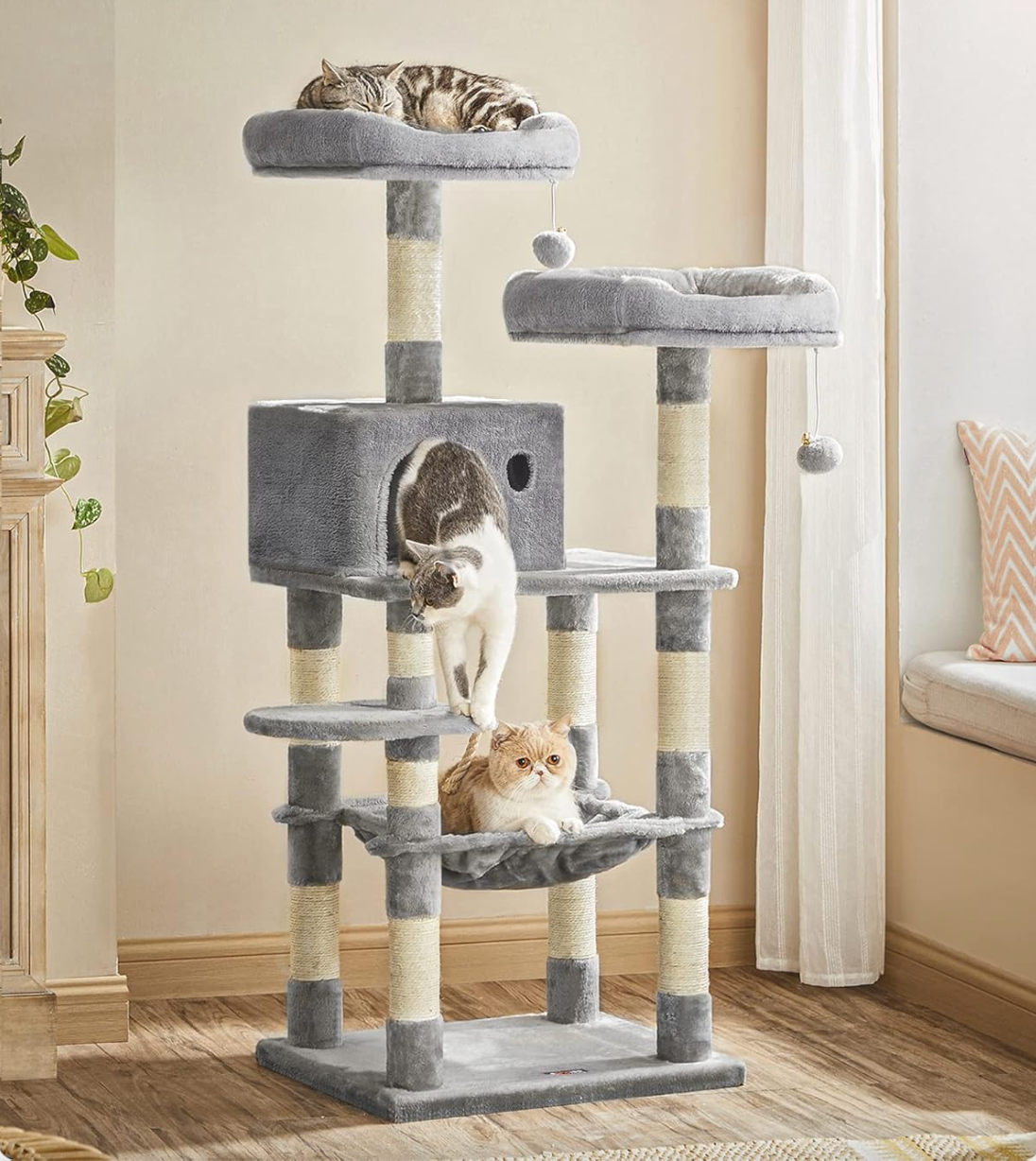 We hope you love our recommendations! While every product is independently chosen by our editors, BuzzFeed and our publishing partners may collect a share of sales or other compensation from the links on this page. You can read more about how our affiliate partnerships work in our Editorial Standards & Ethics Guide. “This isn’t just about fun and games; it’s deeply rooted in their biology," said our expert. This love of high spaces is part of cats’ natural instincts, according to Stephanie Merlin, a certified feline behaviorist and cat well-being educator who runs the popular Instagram account @thefulfilledfeline. “Cats are both predator and prey, so having a high vantage point is a natural way to help them feel safe and secure,” Merlin wrote. “This isn’t just about fun and games; it’s deeply rooted in their biology.” One way to support your cat’s evolutionary need for heights is through investing in a cat tree, a dedicated structure with multiple tiers for cats to climb and perch on. The benefits of cat trees “go way beyond offering vertical space,” Merlin explained. “Many include scratching surfaces, cozy beds, hidden nooks and plenty of spots to leap and explore. Read on for Merlin’s recommendations on how to choose the best cat tree for your pet, including one of her favorite models and more cat trees selected by us. Certified feline behaviorist and educator Stephanie Merlin named this Archie & Oscar Fiedler cat tree as one of her favorites. "When choosing a cat tree, focus on size, function, and accessibility," Merlin wrote. Crucially, "many cat trees on the market are designed more for kittens than adult cats. While smaller trees can be fun, having at least one larger tree (5 feet or taller) is ideal," she explained. This model stretches 73 inches tall, or just over six feet, at its highest point. With multiple tiers for exploring and napping, two enclosed nooks and six dedicated scratching posts, the structure is a great option for single and multi-cat households. It also includes a wall anchor for extra safety and stability. Get it from Wayfair for $95.99+ (originally $164.89; available in two colors). "Function is crucial, too," Merlin added. "Many trees have lounging spaces, but sometimes these aren't big enough for a full-grown cat. Check that scratching surfaces are practical and tall enough and that play features are actually engaging.” I own this Yaheetech cat tree (or rather, my cat Bee does). Bee clearly adores this model She lounges happily on each of its levels, which provide plenty of space for her adult size, and switches between the many scratching posts on the tree for her clawing fix. She loves sleeping in the top bed and frequently cozies up inside the enclosed cave for a nap or some extra privacy as she peeks out to eye (judge) whatever I'm doing. This tree is also plenty sturdy; the structure doesn't wobble despite not being mounted to my wall (though the structure does include a built-in mounting option), and I don't feel any anxiety about it tipping. This option is 63 inches at its highest point and comes in seven colors (including a sweet pink and an edgy black). I own the dark grey, which in person is more of a slate blue. Get it from Amazon for $49.99+ (available in two sizes). Merlin recommended considering your cat's specific accessibility needs when choosing a cat tree. For example, "A senior cat benefits from vertical space too, but you'll want to find a tree with lower steps or platforms that are easier to reach," she said. We think this Lima Pet cat tree from Wayfair provides features that your senior cat may appreciate, like a handy ramp and close-together tiers for an easier ascent. The ramp also doubles as a scratching surface! The structure is covered in a cozy, plush material and sports multiple hanging beds, enclosed caves, ledges and coiled rope scratching posts. The cat tree measures 68 inches at its highest point and comes in five colors (including a fun on-theme leopard print); the model also features a large baseboard to help prevent wobbling. Promising review: "This cat tree was the best money ever spent. I did much research because many other cat tree reviews said the house part was too small for their large cats. This one did not disappoint. The tree has two houses that have more than enough room for our two 15 pound cats. They absolutely love it, and pretty much live on it. The are super happy and content. In addition the tree has scratching posts that I thought they wouldn’t make use out of, but it turns out they love to dig in, and it definitely aids in trimming their nails. This cat tree by far was the best one I found in my research, and I would highly recommend it. Your kitties will be very happy. One more thing .. other tree give you instructions to secure it to a wall. This one does not need. It is very secure and steady on its own." —Albert Get it from Wayfair for $135.99+ (originally $499.96). Cats will love scaling up and down this 68-inch tall Allewie cat tree, and especially settling down for a nap or some eagle-eyed surveillance in the model’s ample lounging spots. Kitties will have their pick of the structure's trio of ultra-high beds, the two sweetly pocketed hanging beds and two roomy caves, plus the structure’s regular tiered perches. Ideal for multi-cat households or an especially lucky single cat, the tree is also covered in sisal rope that kitty claws will love digging into. You can grab this option in six colors. Promising review: "This is definitely the best cat tower I’ve bought. I will say that the box itself when delivered was super heavy due to the great quality so you may need help. I love the quality so much, especially for the price it’s definitely worth the money. My 4 cats were immediately obsessed. My favorite part is the size of everything. The baskets are nice and big so even my pudgy cat fits in comfortably. The open square beds are also big and the plush des