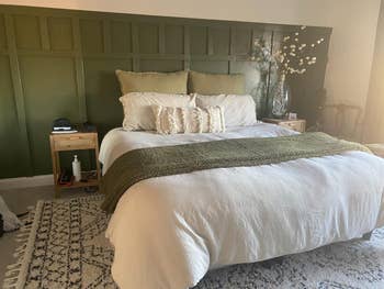 Promising review: "I did not realize that these were out there until I watched a TikTok about one. This has saved my pillows. I do have a headboard, but there was about a three-inch gap between it and my mattress. This has stopped my pillows from sliding down in between. I have had no issues at all with it. I did let it sit for almost 72 hours while it was getting its shape back from being in a shipping container, but after that, it was perfect!!! I highly recommend." —Miss_Beck