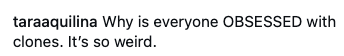 "Why is everyone OBSESSED with clones. It's so weird."