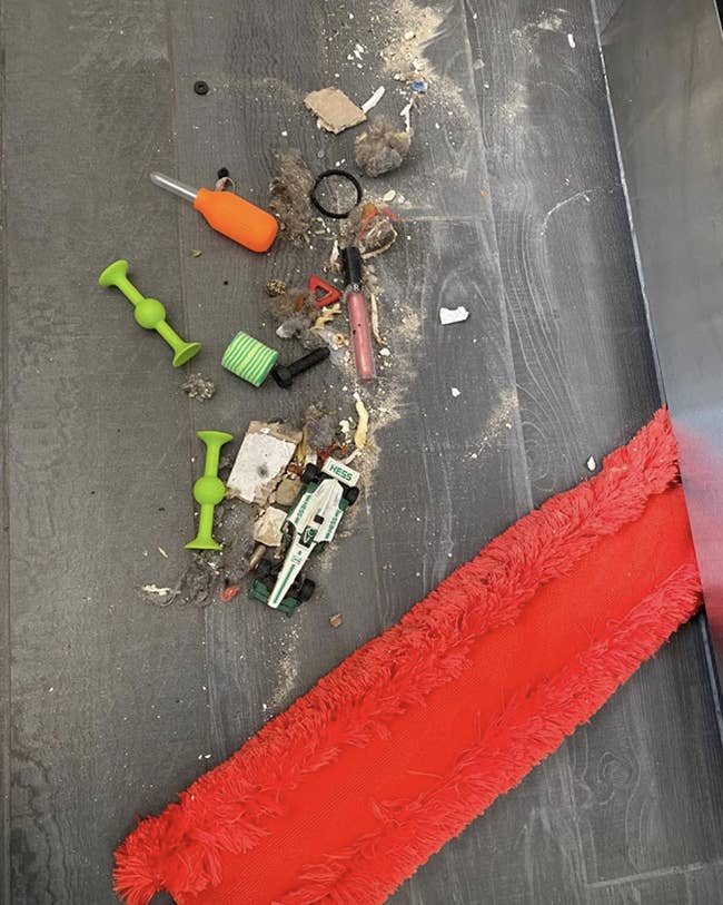 Promising review: "I bought a new home, and I noticed some dust under the stove and fridge, so I bought this OXO duster. Well, surprise, surprise! The previous owners were disgusting, and I cleaned out much more than dust: dust, crumbs, toys, cereal, oats, nuts, and pills. Yuck, yuck, yuck. I don’t think I would’ve pulled out all this crap with any other duster." —Reading&Writing
