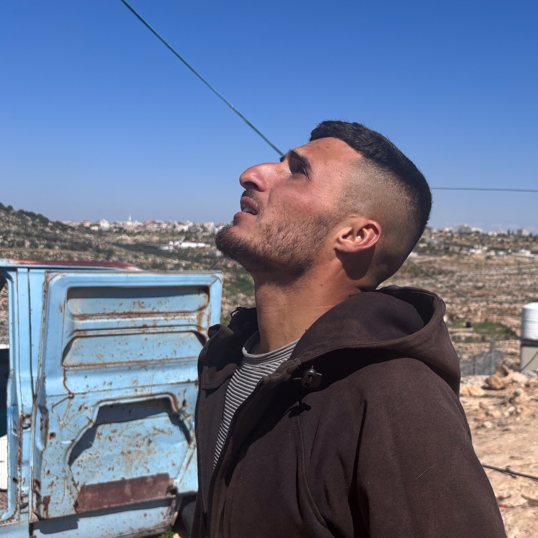 Having fled Ein al-Rashash after his village’s ethnic cleansing in October 2023, Ra’id Zawahra’s modest tin shack is the only home remaining on top of a gorgeous mountain ridge near Duma overlooking the Jordan Valley.