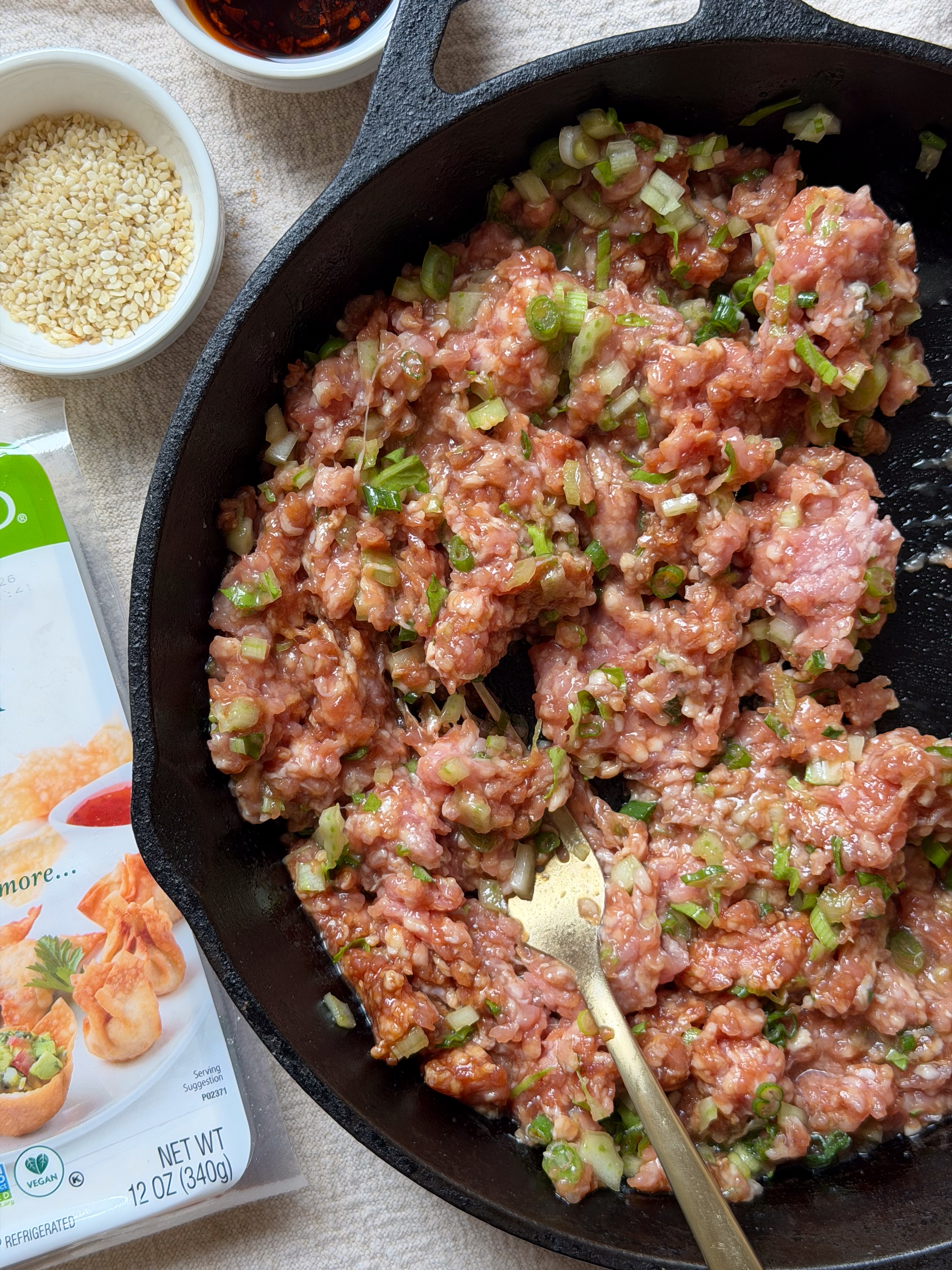 I’ll also note here that not all the filling fit into my eight-inch cast iron skillet, so I had to work in two batches. If you’d like to do it all in one pan, I suggest a large cast-iron skillet, about 12 inches.