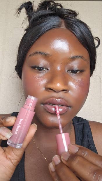 Promising review: "This is the first lip oil I've ever used. Usually I avoid anything with oil because I have very sensitive and generally oilier skin, but I wanted to give this a try because I wanted something sheer and pretty for a natural makeup look. Probably the best purchase I've ever made!!! It's super sheer and looks fine on its own without any other makeup. The smell is delicious, and while the gloss dries and fades after about an hour or two without eating, the color stays all day! I did have to reapply after eating, but not after drinking water! I just wish it was bigger, it's a teeny bottle. Would definitely buy again!!" —Rachel