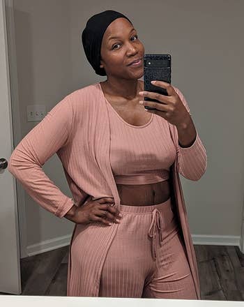 Promising review: "I already have this set for myself, but I bought another one for my sister. Let me tell y’all, the stretch on this is AMAZING, and it’s incredibly soft. Blown away with this and will be buying another one for my wedding!" —Moly